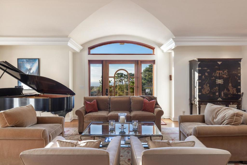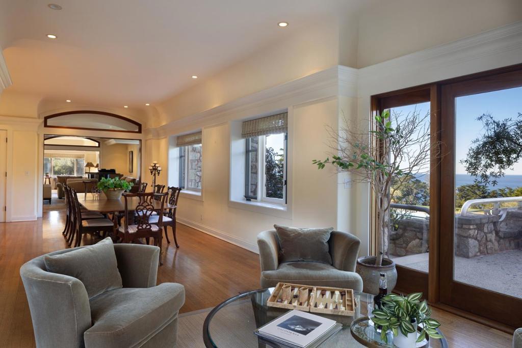 Breathtaking views of the coastline stretching from Point Lobos to sunsets across the Pacific Ocean, this private 14-acre estate in Carmel Highlands has long served as a source of inspiration for Grammy-Award winning composer Alan Silvestri, whose work includes iconic scores for Back to the Future, Forrest Gump & The Avengers. The beautifully reimagined Craftsman-style main residence is distinguished by its architectural character and craftsmanship. Locally sourced jade, stone, & redwood are woven into the design creating a blend of elegance and authenticity. Enjoy the stunning ocean view setting with a swimming pool & hot tub, landscaped grounds & a private tennis court. Also featuring 3 guesthouses, each with its own story to tell, offering versatile spaces for family, guests or creative pursuits. Just a short drive from the charm of Carmel, this extraordinary property combines natural splendor with meticulous design, offering a rare opportunity to experience both inspiration & serenity.