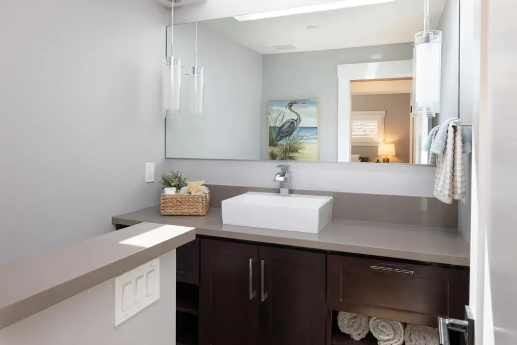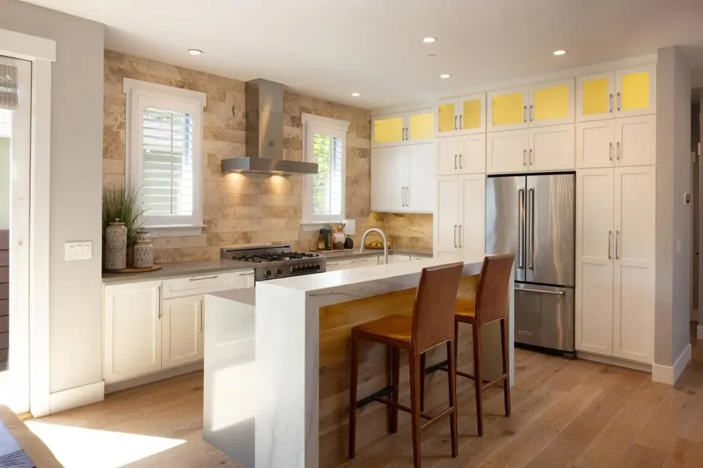 Beautifully reimagined Carmel-by-the-Sea home just moments from downtown, thoughtfully remodeled by Lewis Builders with high-end finishes and timeless design throughout. This 3 bedroom, 2.5 bathroom residence offers ~1,850 sq ft of light-filled living space, featuring an open floor plan, 10-foot ceilings, and wide plank oak flooring. The chefs kitchen is equipped with Calcutta marble and Caesarstone countertops, a Bertazzoni stove and hood and a large island with bar seating, flowing seamlessly into the dining area and living room with a striking stone gas fireplace. Custom lighting enhances every space. The main-level primary suite includes a spa-like bath with a skylit shower, his and her sinks, and direct access to the fenced backyard. A convenient half bath is also on the main level. Upstairs, two bright bedrooms share a beautifully appointed full bath, with one offering a private balcony, plus an additional spacious balcony for outdoor enjoyment. The front yard features a welcoming sitting area with a fire pit, perfect for relaxing evenings. Complete with a 1-car attached garage, this turnkey home blends luxury, comfort, and ideal Carmel living.