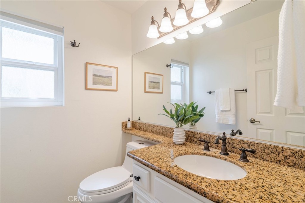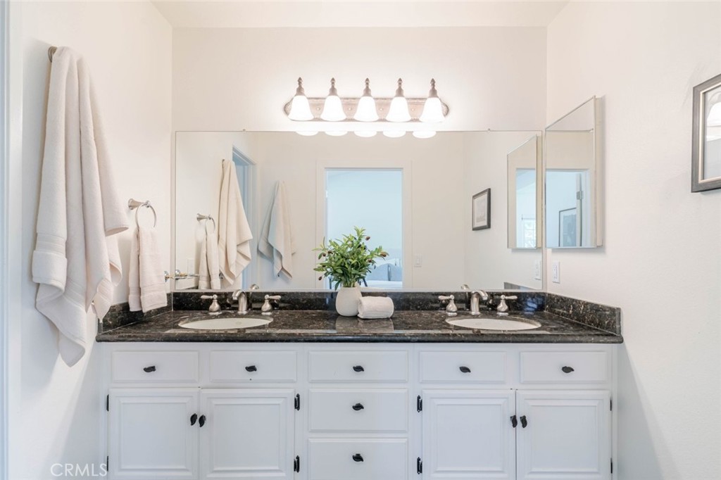 The updated kitchen showcases stainless steel appliances, granite countertops, and ample cabinetry, with matching granite finishes in all bathrooms. The primary suite offers a true retreat with a walk-in closet, dual sinks, and a luxurious separate tub and shower.