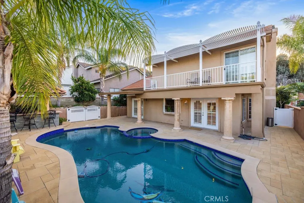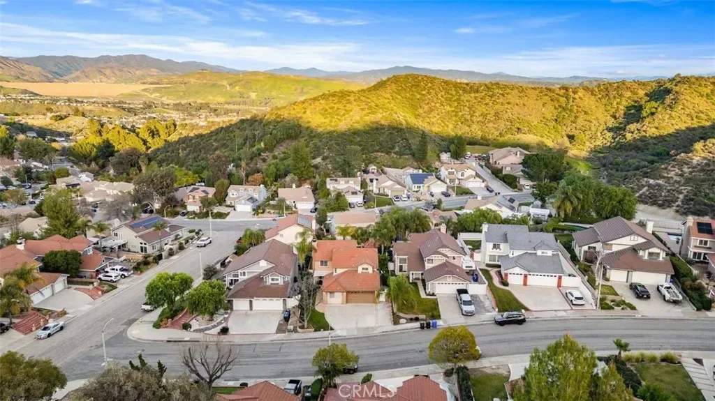 Welcome to this beautifully maintained two-story pool home in the highly desirable Bravo tract of Castaic’s scenic hillside community. Showcasing pride of ownership throughout, this residence offers an ideal blend of comfort and functionality. Attractive curb appeal opens to a light-filled interior featuring soaring ceilings, a dramatic spiral staircase, and a formal living room with clerestory windows. Custom hardwood flooring enhances the open floor plan. The formal dining room features French doors to the backyard, while the upgraded kitchen offers ceramic tile flooring, abundant cabinetry, granite countertops with high backsplash, breakfast bar, newer stainless steel gas range and microwave, and a large bay window overlooking the pool. A casual dining area with additional French doors creates seamless indoor-outdoor flow. The family room includes a custom fireplace, built-in entertainment centers, and storage beneath the staircase. A guest powder room completes the main level. Upstairs, the spacious primary suite features two closets, a large retreat with walk-in closet (builder option for a fourth bedroom), and sliding doors to a private balcony with mountain and the stunning backyard views. The updated ensuite includes a dual-sink vanity, oversized jetted soaking tub with shower, private water closet, and custom organizers. Two additional bedrooms and an updated bathroom complete the second floor. The backyard is a private oasis with a covered patio featuring recessed lighting and ceiling fan, concrete hardscape, sparkling Pebble Tec pool and spa with upgrades, and a custom gazebo with gas grill, sink, and counter space. Additional features include dual-pane windows, whole house fan, tankless water heater, plantation shutters, crown molding, ceiling fans, new toilets, oversized A/C unit, newer gutters and downspouts, upgraded pool equipment, new sprinkler system, and automatic pool water leveler. No HOA or Mello-Roos. Conveniently located near Castaic Lake, shopping, dining, schools, and freeway access.