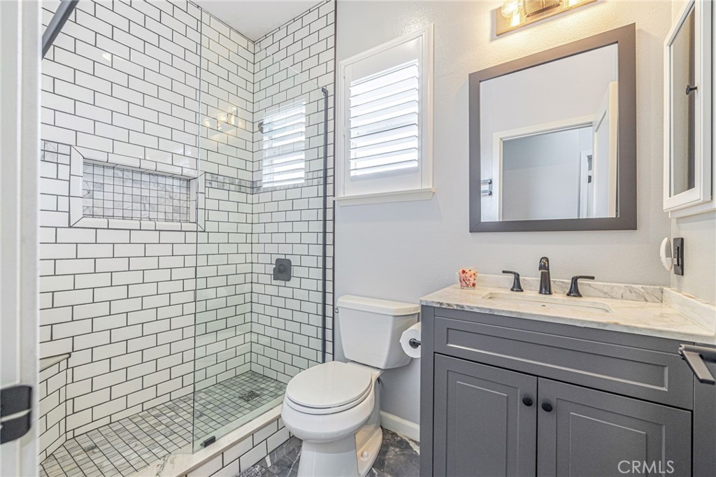 All bathrooms have been tastefully remodeled with high-end finishes, including quartz and marble surfaces, custom vanities, designer tilework, and updated fixtures. The primary suite offers a spa-inspired retreat with a soaking tub and separate shower, creating a relaxing, resort-like experience.