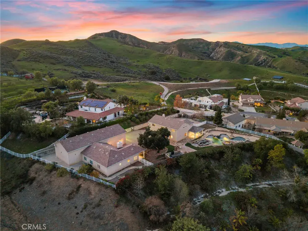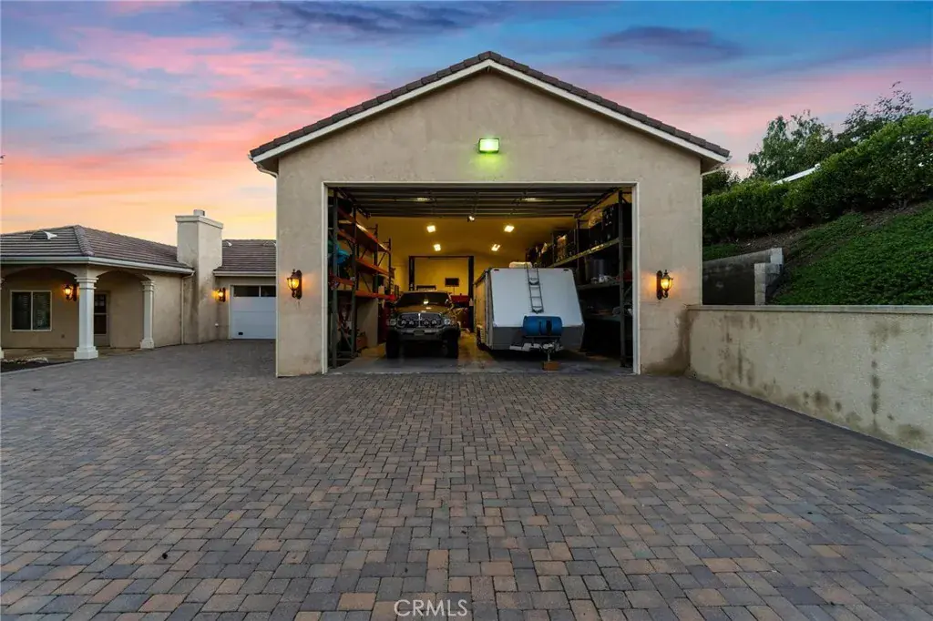 You could search for years before finding a property like this – a gated home on almost an acre with a 3,000 square foot workshop AND permitted Guest House! Perched high above the Hasley Hills with spectacular views and privacy sits a home truly like no other. With so much land to work with, the owner created a gated compound with features rarely found anywhere. An 800 sqft single story guest house with kitchen, living room and high ceilings. Completely detached from the main house. Next to the guest house is a double workshop/garage (75 by 35 and 35 by 30) with 16 foot tall doors and capable of housing virtually any RV, boat, or classic car collection. There is literally room for up to 14 cars and it’s built right with R30 insulation, plenty of lighting, 220 electrical and easy access in and out. Truly well done! As soon as you pass through the gates onto the massive stone driveway that leads from the front all the way to the back of the property where the workshop is, you know this property is special. The guest house has 10 foot ceilings, 3 foot wide doors, kitchen, fireplace and walk-in closet with good storage throughout. Perfect for parents or guests, as there are no stairs and access is seamless. The huge pebble tech pool and sunken BBQ cook station with Viking appliances means parties for 200 aren’t a problem and the firepit and fireplace offer separate conversation areas, all with amazing views as the home sits high above the downslope neighbors. The main house is plenty big with an expanded family room in lieu of the 3-car tandem garage (you don’t need it with the massive workshop!) full bedroom with private bath downstairs, 4 more bedrooms up and another 3 full baths. 4.5 baths in the main house and a full bath in the guest house so lots of living flexibility. No Mello Roos or high HOA fees in this well maintained, planned community. An amazing setting with views forever and incredible property to go with it. What a home!!