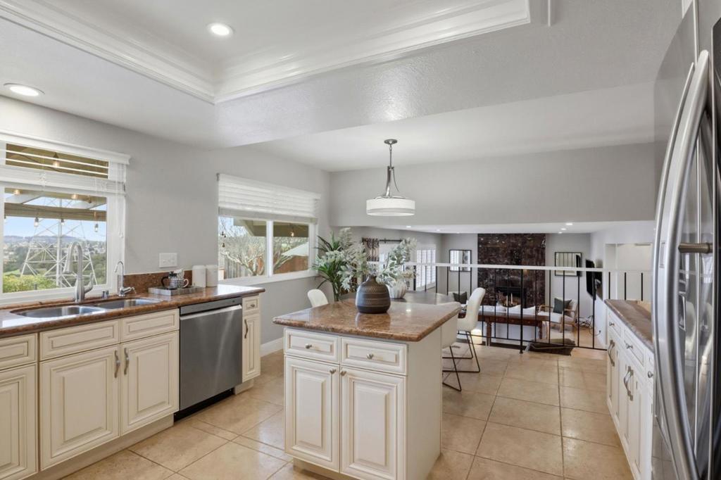 Welcome home to this spacious estate with views. Located in the highly desirable neighborhood of Briar Ridge and rarely becomes available! High quality remodel blending modern style with comfortable set on a large, private .30-acre lot with breathtaking 180-degree valley and ocean views. This home has freshly painted interior & exterior, newly constructed patio, and dual-zone HVAC for year-round comfort. The open concept living room and elegant family room with designer ceiling lights and Brazilian oak flooring. The gourmet kitchen features custom cabinetry and premium new LG appliances. The primary suite offers a spa-inspired, newly remodeled bathroom and seamless access to sweeping views. Downstairs bedroom and bath is ideal for guests, extended family, or an executive home office. The resort style, private backyard includes a private orchard with mature apple, apricot, plum, loquat, persimmon, avocado, and multiple citrus trees. The views and deck, patio areas offer elevated entertaining options and outdoor living. Located in a high ranked school district and minutes to parks, shopping, and dining.