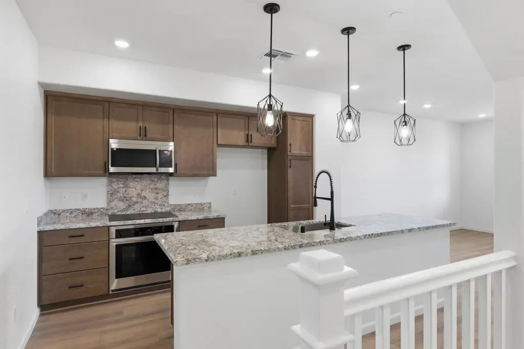 Homebuyer Favorite! Enjoy extra space with an ADU (accessory dwelling unit) complete with separate entrance, kitchen and full bath. The main home showcases a bright and spacious dining and living area (leading to your own private outdoor deck), a modern kitchen with an island and pendant lighting, granite countertops and stainless-steel appliances. Convenient bedroom and full bath on same floor. On the 3rd floor, a large primary bedroom leads to a walk-in closet. Luxury vinyl plank flooring throughout. Other features include a 40-amp. electric charging station pre-wiring, solar energy system (lease or purchase required) and a limited 10-year warranty. This brand-new community will feature a community play area, bike lane, bike racks and bike repair station, plus park-like areas with seating, open space and art installations. Walking distance to Castro Valley BART station; convenient to I-580 and Tri Valley, San Jose and Mid-Peninsula job centers. Close to outdoor recreation, including Chabot Regional Park and Cull Canyon Regional Recreation Area. Be home for the holidays. Schedule a tour today.
