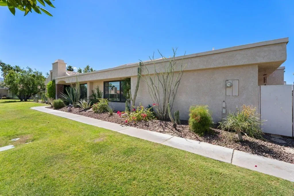 Views, views, views! Welcome to this beautifully positioned home on Seven Oaks Drive in Cathedral Canyon Country Club, where breathtaking mountain vistas take center stage from the living room, kitchen, primary suite, and private patio. With approximately 1,900 square feet, this spacious 3-bedroom, 2-bath residence offers one of the community’s most desirable floor plans. The third bedroom has been thoughtfully converted into a versatile den, perfect for a home office, media room but could be returned to a bedroom by restoring the atrium for egress.Vaulted ceilings enhance the sense of openness, while large NEW windows throughout flood the home with natural light and frame the stunning scenery. The inviting living area is ideal for hosting gatherings or relaxing evenings at home. The kitchen flows seamlessly into both formal and casual dining spaces, making everyday living and entertaining effortless.{Step outside to your private patio and take in the serene surroundings–perfect for morning coffee, sunset cocktails, or simply enjoying the peaceful desert ambiance. Additional highlights include generous laundry room, great interior storage and a two-car attached garage with direct access.Located within the gated Cathedral Canyon Country Club, residents enjoy resort-style amenities including golf, tennis, multiple pools and spas, and beautifully maintained grounds. HOA benefits include cable TV, internet, exterior maintenance, and more–offering a truly low-maintenance lifestyle.Whether you’re seeking a full-time residence, seasonal retreat, or investment opportunity, this home delivers comfort, space, and unforgettable views in one of the desert’s most desirable communities.