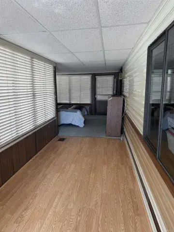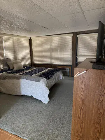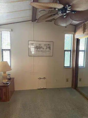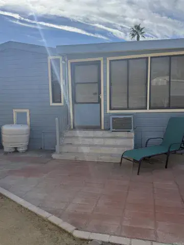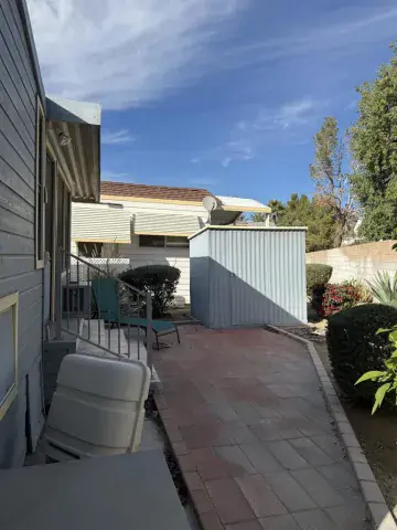 Welcome to beautiful, resort-style tiny house living in the highly sought-after Desert Shadows RV Resort—where you own the land and enjoy NO space rent! This charming 1 bedroom, 1 bathroom home features a rear brick patio, storage shed, and attached carport. The bedroom offers a ceiling fan and mirrored closet doors. The kitchen is equipped with ceramic tile countertops, wood cabinetry, refrigerator, stove/oven, and microwave. The living room showcases a custom wooden leaf ceiling fan, adding unique character. An enclosed porch provides additional living space, with laminate flooring that continues through the kitchen and dining area. The home features all copper plumbing with a lifetime guarantee. Desert Shadows is an amenity-rich, gated community offering 6 pools (including a large lap pool), a fully equipped fitness center, library with WiFi and broadband, two well-maintained clubhouses, indoor shuffleboard pavilion, tennis courts, a 16,000-square-foot ballroom, card and hobby rooms, putting green, and picnic areas. HOA dues include landscaping, recycling, water, sewer, and cable. Ideally located just minutes from Palm Springs, Palm Desert, Rancho Mirage, and all other Coachella Valley cities—this is the perfect seasonal desert retreat.