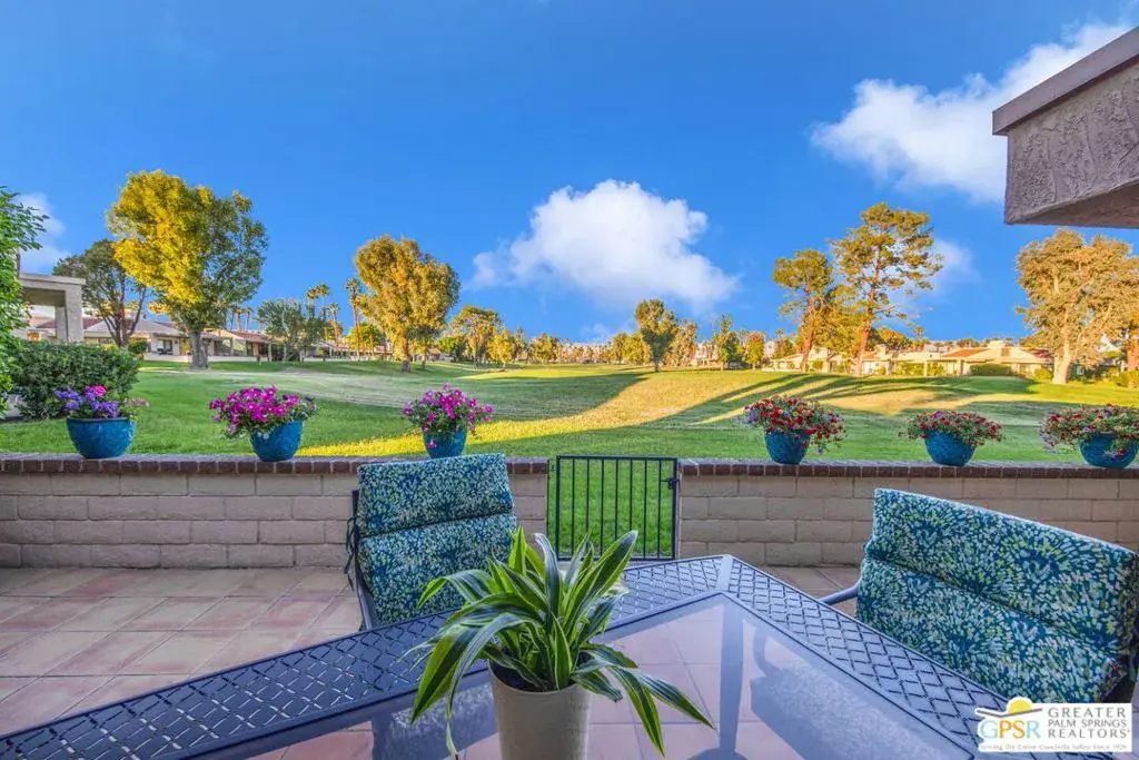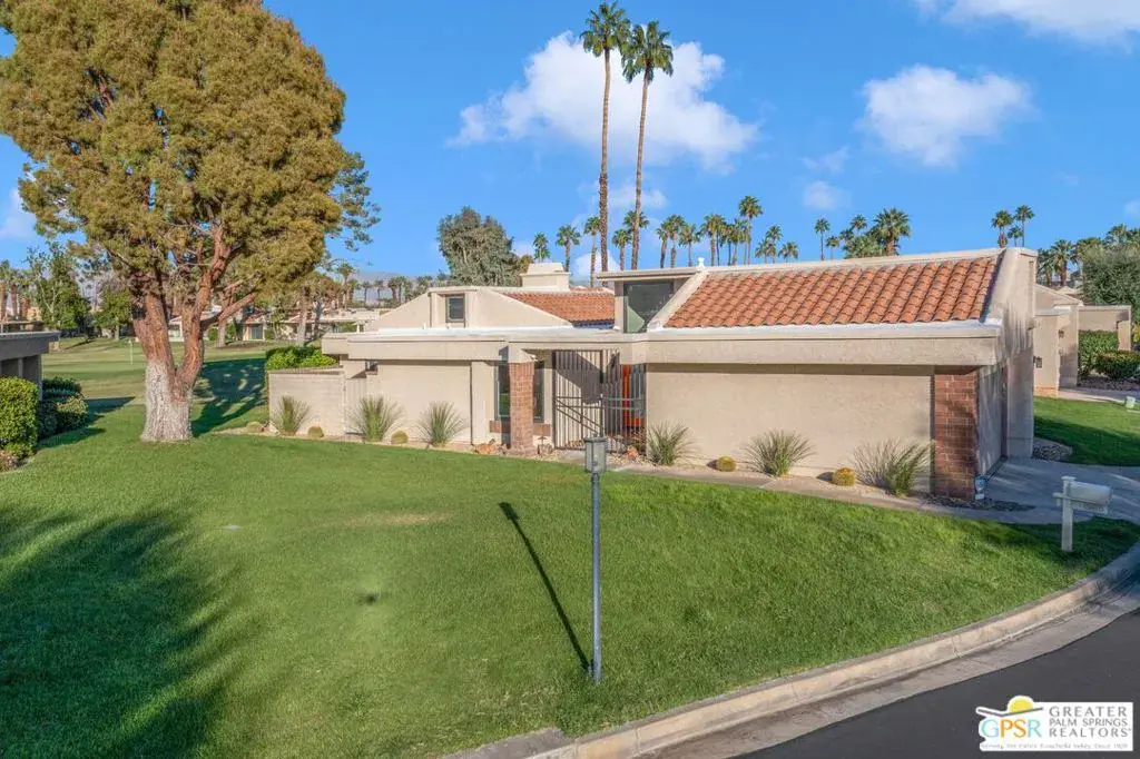 Beautifully renovated golf course patio home showing true pride of ownership! Desirable 3BR floor plan with great bedroom separation, vaulted ceilings, and spacious living area with wet bar. Gourmet kitchen and large windows create a bright, open feel. Attached 2-car garage offers direct access, AC split system, insulated walls/doors, and storage loft. Enjoy stunning golf course views of the 6th hole and green from the expansive patio. Updates include HVAC with heat pump, 50-gal water heater (2019), and dual-pane windows. Located in gated Cathedral Canyon CC with golf, tennis, and resort-style amenities minutes to shopping, dining, and Palm Springs Airport! Seller may consider a lease option.