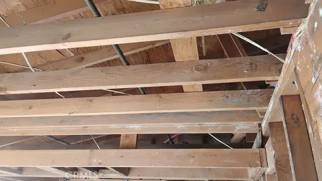 Fabulous views of Rancho Mirage Ritz, quiet area, close to shopping, large private backyard with pool, major asbestos abatement, all Sheetrock removed (permitted), permitted garage living quarters will be garage. Pool room with bath and changing area. Price reflects unfinished state. Buyer to finish. Plans submitted to Cathedral City, fees paid and are posted. New tankless water heater. New roof by AL Miller. Major asbestos abatement by PEA. Fascia recently painted a deep navy blue. All new interior water lines. New water line from house to street. 1574.91 sq ft House 682.39 sq ft Other area