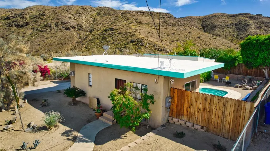 Outstanding opportunity to own a Cathedral City Cove compound! Thinking of Multi-generational living? Rental income? This property can suit many situations. Potential abounds to take it to another level if desired, or just enjoy the perfect property as is! 3 Buidings comprised of: A one-bed / one-bath main House which has been nicely upgraded with wood flooring, a modern kitchen, bath, and fresh paint, windows, doors, and lighting. Sliders to the private yard and the pool fill the house with light and give a spacious feel to the home. Outside, across the heated pool, is a two bed one bath guest house. offering even more flexibility for you! In between and wrapped around the structures are multiple patios and outdoor living spaces. The whole property is fenced, including the driveway. Easily enjoy what true desert living is all about.There is a one-car garage, which also provides extra storage areas. A laundry area is located between the garage and the casita. Best of all, the location of this property is adjacent to open space, enhancing both your mountain views and your privacy! Unique properties like this don’t come on the market often. Hurry to see this one before it is gone.