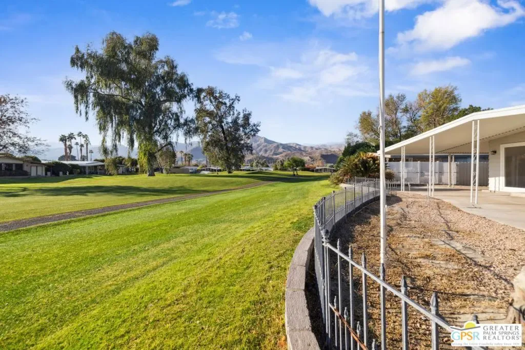 Welcome to resort living in this premier 55+ guard gated community of Date Palm CC. This country club includes 18 holes of golf, of which this 2bed,2bath 1440 sq ft home has FABULOUS golf course and mountain/water views. This home is LOWEST PRICED on golf course. Don’t let this OPPORTUNITY pass you by. Date Palm CC offers both tranquility and member activities. There’s a large clubhouse with pool/spa, a restaurant, golf shop, tennis/pickle ball courts, sports pavilion, satellite pools/spas…even a dedicated doggie park. The interior of this home has been updated, featuring fresh paint, new flooring, and kitchen counter AND NEW ROOF! The open concept home provides a spacious atmosphere. The back patio faces the golf course and the views. This home is a great choice for anyone who is retired looking to down size and especially for those who can enjoy the golf course whether as avid golfer or just enjoying watching. Being one of the lowest priced homes with golf course views, it will not remain on the market for long. **A full price offer will also garner a $10,000 credit that can be used by buyers, for example, towards about first 6 months of rent space!!** Come See, Make Offer. Priced to sell NOW!!