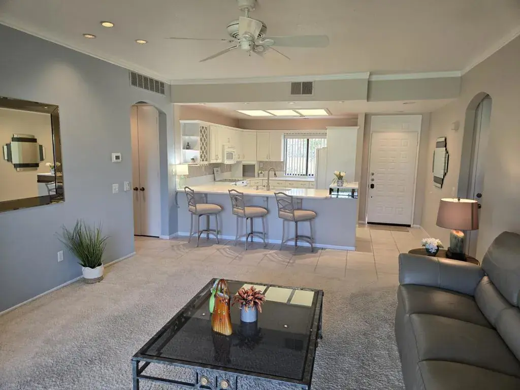 The perfect desert retreat in the heart of Desert Princess. Enjoy this 2-bed, 2-bath condo that invites you to sit and relax with friends on the private patio. Kitchen has been remodeled and has plenty of storage, and a nice open concept feel to the living room. This split master has separation for privacy while hosting your friends & family! The perfect desert get-a-way, vacation rental or both! Make this desert condo yours today and spend the winters in Paradise!Land Lease extended to 2069, monthly ground rent is $215.89.The Desert Princess has an affordable 27-hole PGA Championship golf course, no Tee-time lotteries, no initiation fees, rated among the best in the valley by GOLF DIGEST. This quiet community is away from the noise yet minutes from everything that is in Palm Springs; restaurants, shopping, casinos, an international airport, the Tramway, Art Museum, Theaters, and the Street fair.Restaurant on site. Health and fitness center on site.