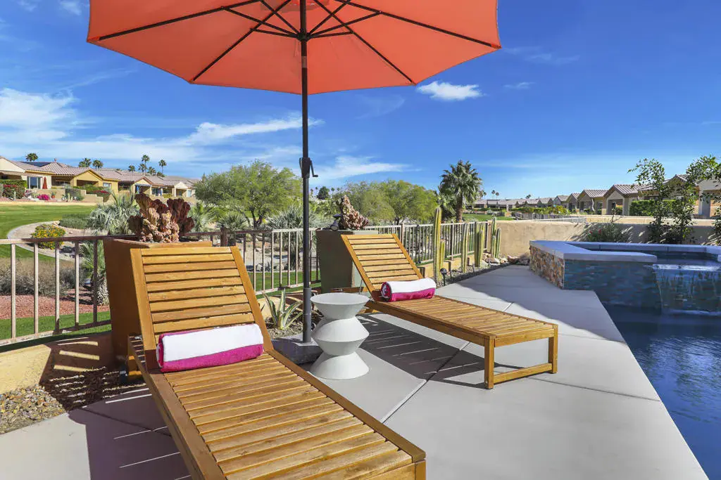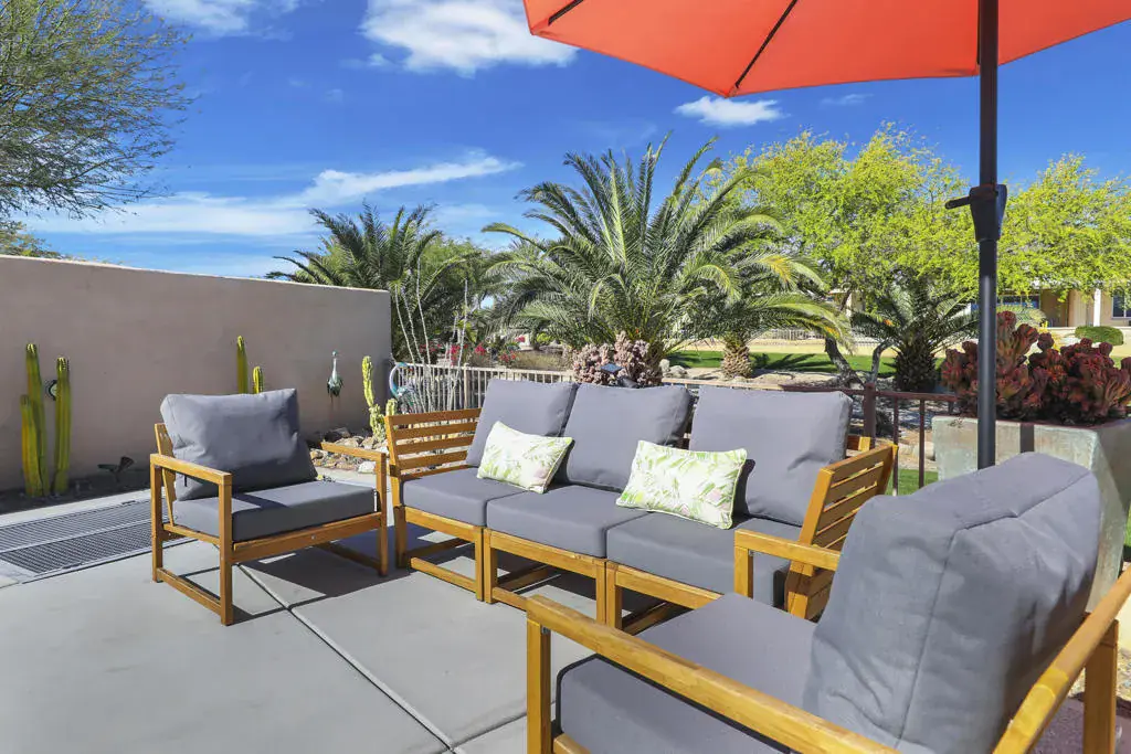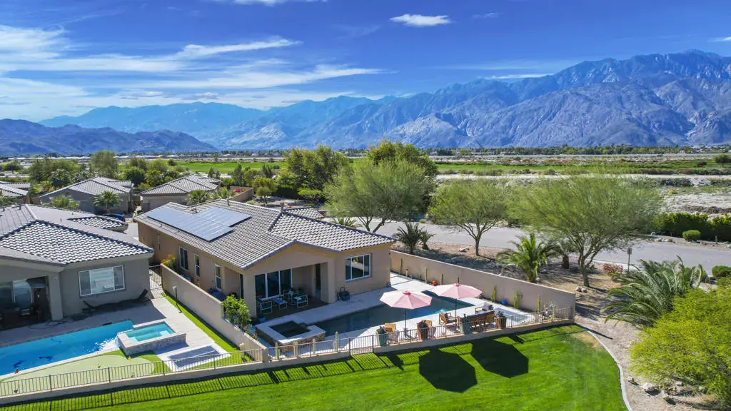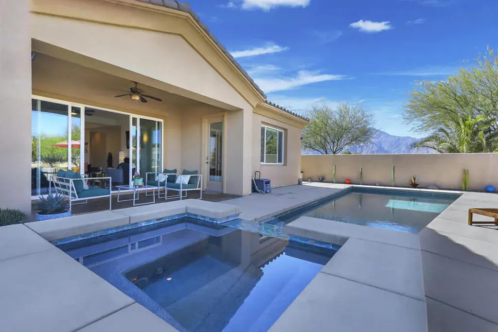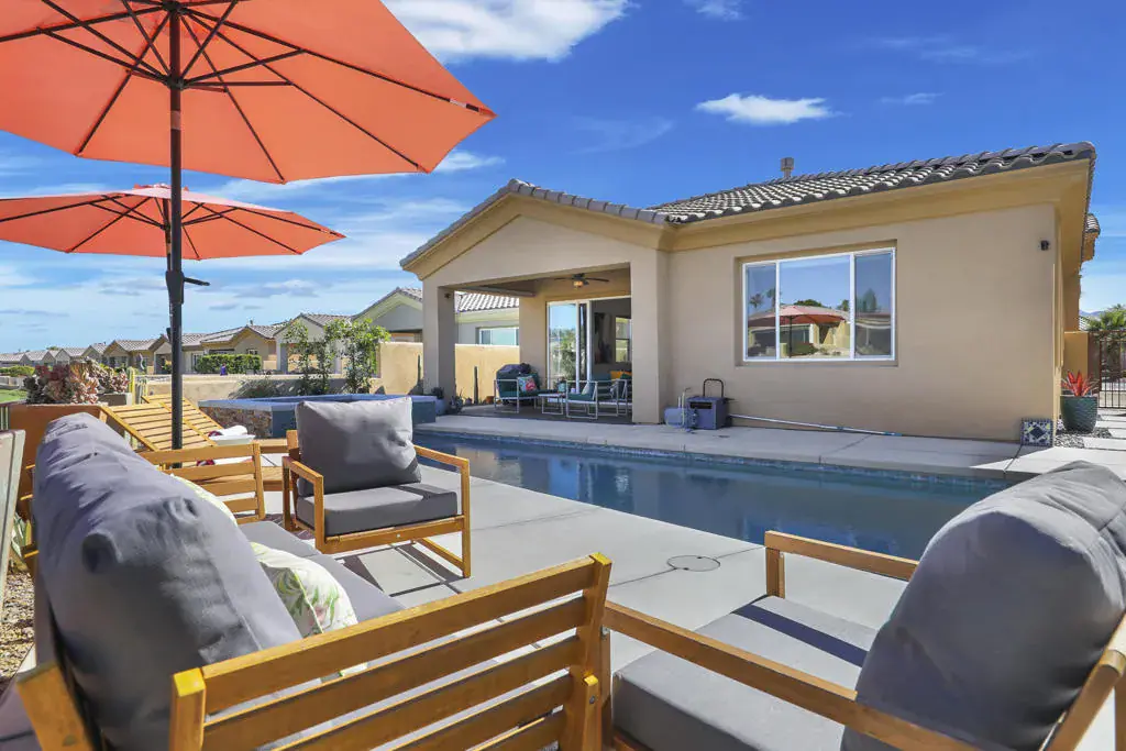 Set on fee land in the desirable Desert Princess community, this beautifully maintained home with gorgeous mountain views blends comfort, privacy, and effortless desert living. Positioned on a premium corner lot, it offers enhanced outdoor space and a welcoming indoor-outdoor flow with OWNED solar on the Tier 2 Metering Plan.The bright great room features abundant natural light, a cozy fireplace, and direct access to the covered patio. Step outside to your own private pool and spa, surrounded by a custom privacy wall–an ideal setting for relaxing or entertaining in a tranquil greenbelt location.Energy efficiency is a standout benefit thanks to the OWNED solar system, providing year-round savings and peace of mind. The spacious primary suite includes a spa-inspired bathroom with a soaking tub, frameless glass shower, and a custom walk-in closet. The oversized backyard offers room to personalize and enjoy the desert lifestyle.The home is also short-term-rental eligible, offering flexibility for owners who may wish to use the property seasonally or generate additional income.Residents enjoy access to 27 holes of championship golf, multiple pools and spas, a fitness center, tennis and pickleball courts, lakes, and 24-hour security. Whether as a full-time residence or a seasonal retreat, this home delivers exceptional comfort and value.