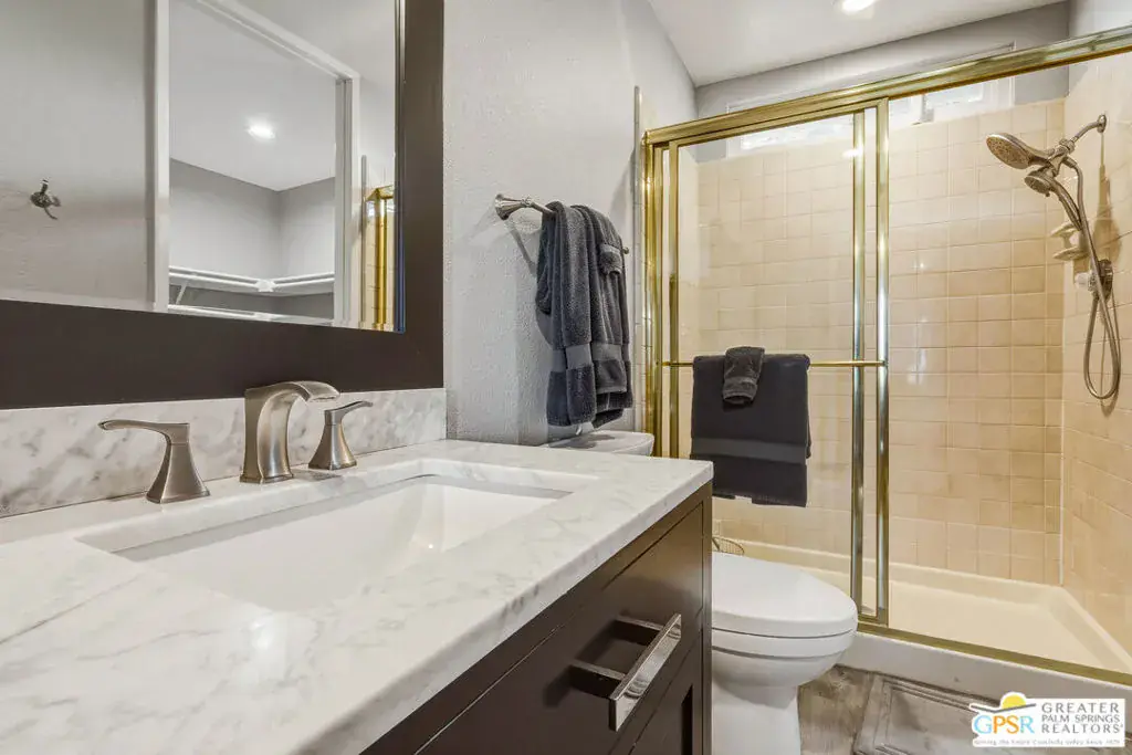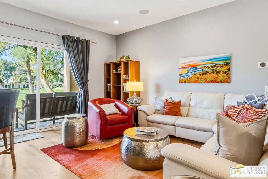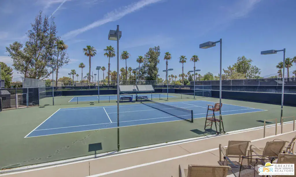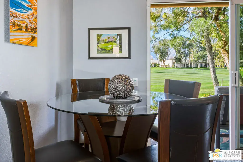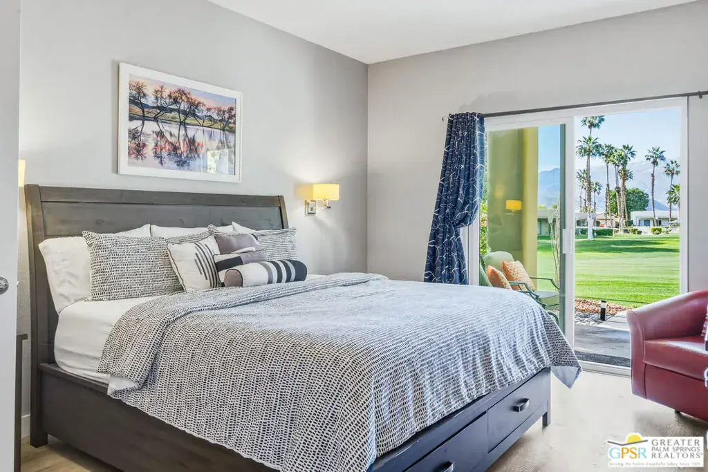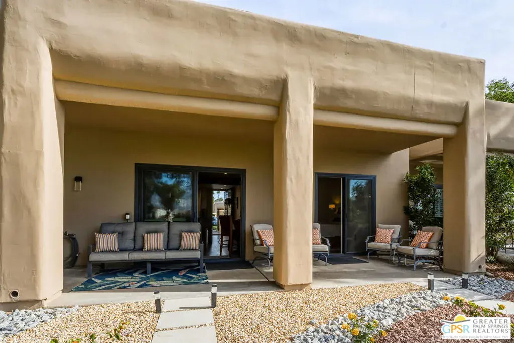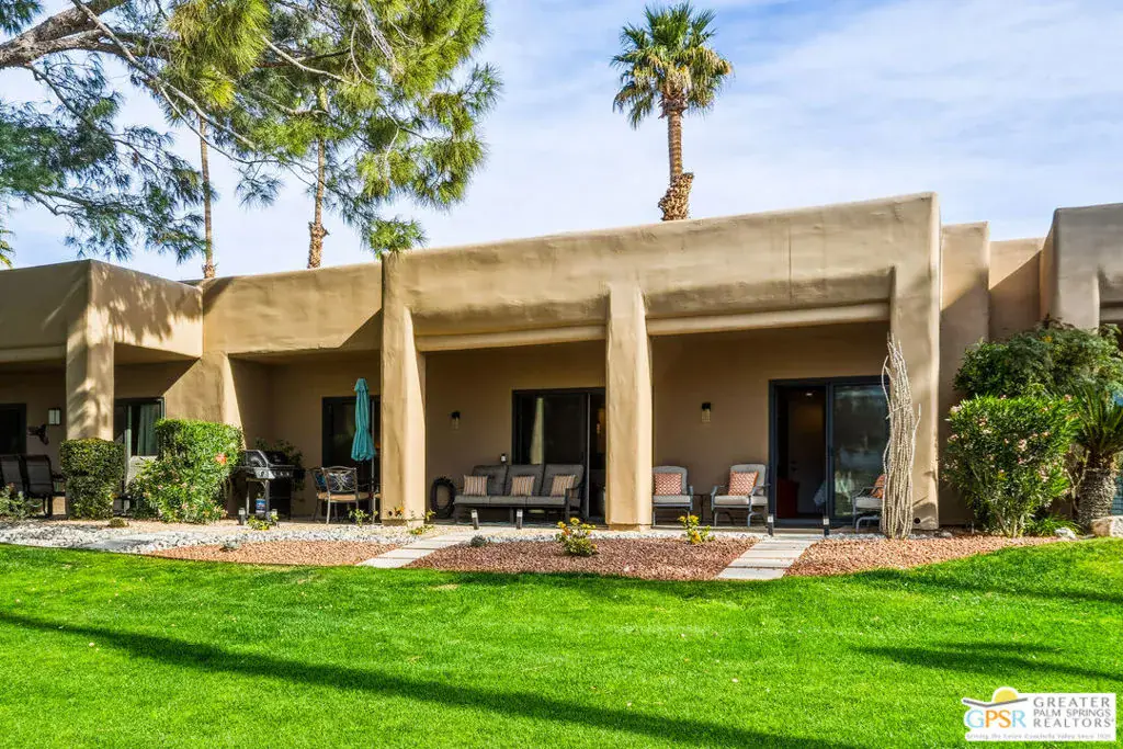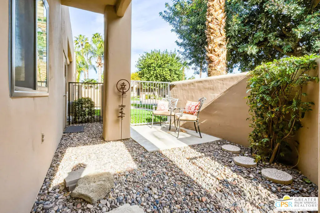 This home has a modern feel with every room relaxing in natural light and serene views. Welcome to 67417 Toltec Court, the Alameda floor plan has 1,212 square feet as a vacation or income property located in the desirable Desert Princess community. Newly landscaped patios enhance the peaceful desert sunsets. Enjoy your season in the sun or your profits with this popular 2 bedroom 2 bath condo. Well cared for by a meticulous owner who extended the land lease to 2069. A 1-car garage has a recently updated door, opener and secure dead bolts. The kitchen includes a convection oven, microwave, and unlike other condos, this one features a dedicated coffee bar with pantry and updated cabinetry with modern countertops and newer appliances for everyday living. There is a restaurant and bar on property and members can access the full service hotel. This quiet community is minutes from everything. The HOA covers roof and exterior maintenance, grounds upkeep, cable/internet, and a 24-hour guard gate, along with resort-style amenities including a 27-hole PGA Championship golf course, fitness center, tennis, bocce ball, pickleball, and access to over 30 pools and spas. Enjoy the full resort lifestyle at Desert Princess today!