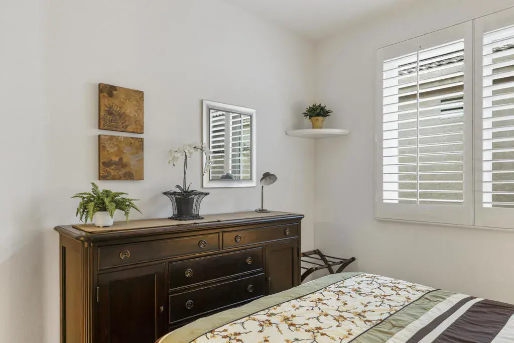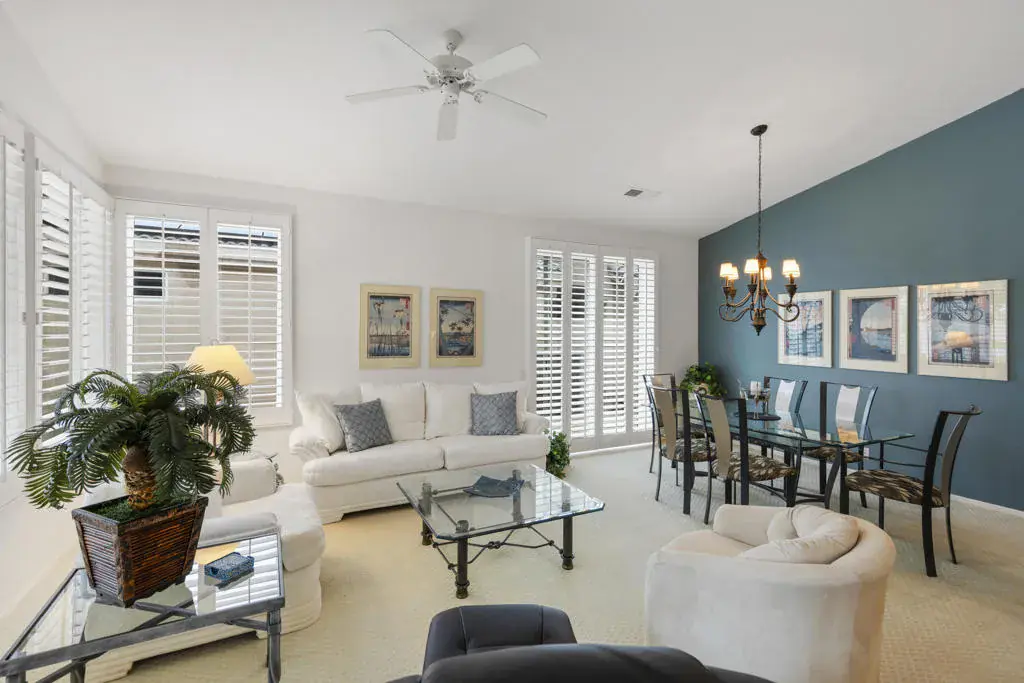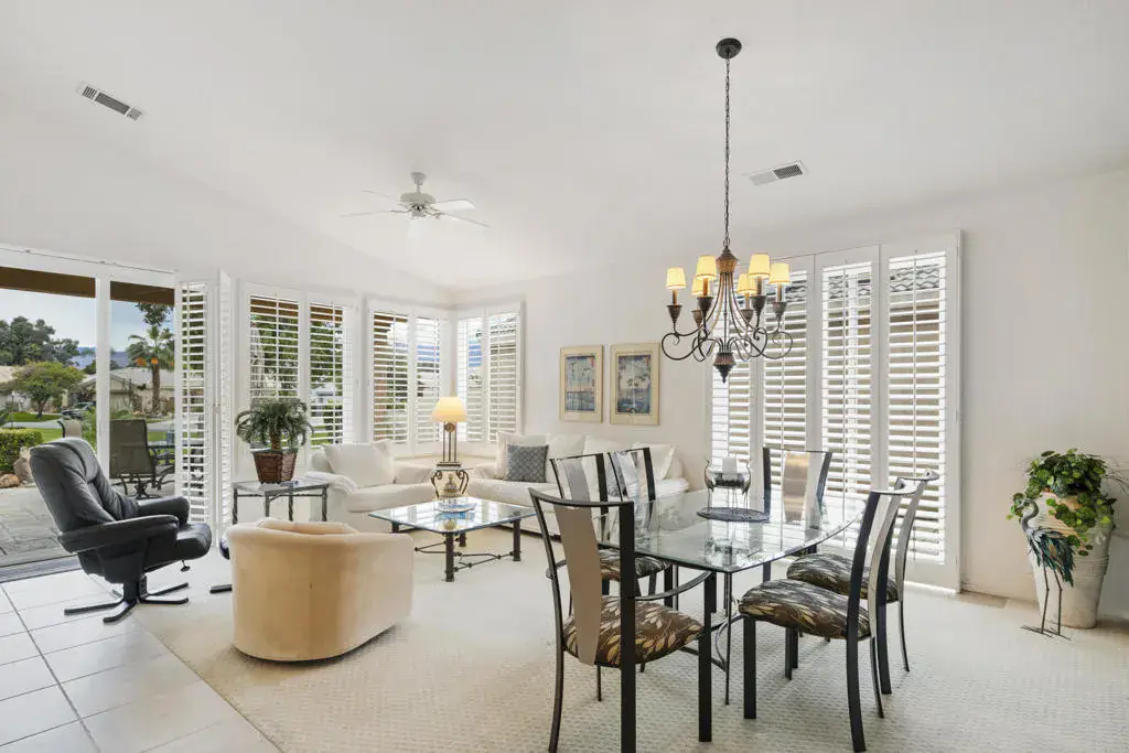 If you are looking for a home where you OWN THE LAND with a Spectacular location then this is it. Featuring the most sought after Saint Andrew’s model home on a quiet cul-de-sac with your patio facing a beautiful greenbelt with mountain views. Completely Furnished Turnkey, with Plantation Shutters. This 3-bedroom 2.5 bath home features an open floor plan with natural lighting illuminating throughout the home. The Kitchen features granite countertops, with a center island. This GEM of a home has just undergone over $50,000 worth of upgrades, including Windows with a lifetime warranty, AC, Furnace, Dishwasher, and new Landscaping, just to name a few. For a complete list call the Listing agent. A Golf Cart is included with newer lithium batteries with seating for passengers. Also included two bicycles. The Desert Princess offers a 27-hole PGA championship golf course, with discounts and preferred tee-times for owners with no initiation fees, rated among the best in the valley, beautifully maintained open year-round (except for overseeding). Member golf rates are some of the lowest in the valley. HOA dues include a social membership to the very active golf club, cable internet, including HBO and Showtime, bocce ball and 12 pickleball courts, EV charging stations, tennis courts, and fitness center, 34 swimming pools and spas. Grounds are maintained to your doorstep (you pay only for inside water). Desert Princess Country Club is conveniently located just minutes away from Palm Springs International Airport, Downtown Palm Springs, restaurants, shopping, nightlife and hiking. Several casinos are nearby. Be sure to see the restaurant, clubhouse, tennis courts, and fitness center.