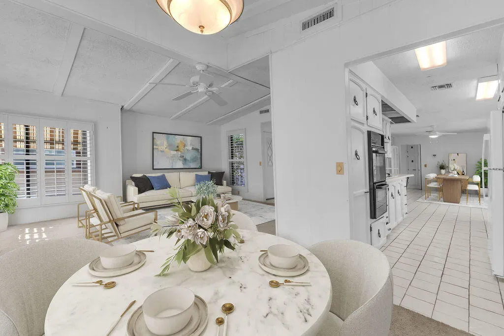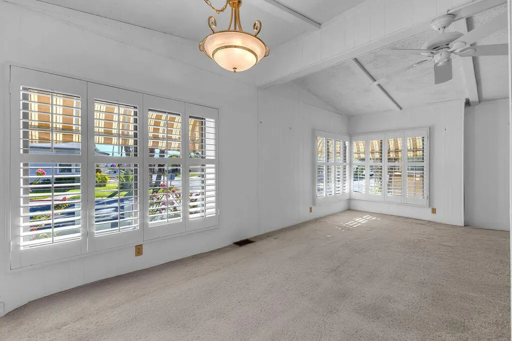 Unlock the potential of this spacious 2-bedroom, 2-bathroom home located in the highly desirable Desert Sands Mobile Home Community. Offered in as-is condition, this property presents an incredible opportunity for buyers looking to customize and add value in one of the area’s most sought-after 55+ communities.Ideally situated just steps from the clubhouse, residents enjoy convenient access to resort-style amenities while benefiting from a peaceful setting with rare, unobstructed greenbelt views, a standout feature not commonly found within the community.The home features a larger-than-typical floorplan, including a formal dining area ideal for entertaining, a dedicated laundry room for added convenience, and a well-designed split layout that provides privacy between the bedrooms and main living areas. Custom window shutters add charm and function throughout, while the patio deck offers west-facing mountain views, perfect for enjoying desert sunsets. The HVAC system has been recently serviced and maintained, offering added peace of mind.Whether you’re an investor seeking a value-add opportunity or a buyer ready to create your ideal desert retreat, this property offers strong upside, a prime location, and a layout that truly stands out.