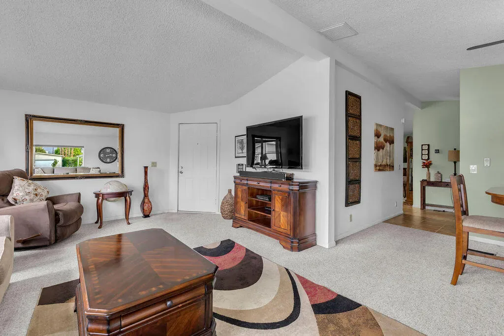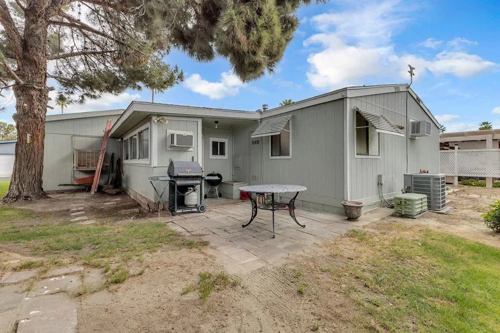 Discover the comfort and space of this larger floor plan home in Desert Sands Mobile Home Community. Featuring 2 bedrooms, 2 bathrooms, and a versatile bonus room, this property offers flexibility to fit your lifestyle. The open kitchen and den create a welcoming space for everyday living and entertaining. Step outside to a cool, shaded patio area ideal for enjoying the desert evenings, plus a storage shed for added convenience and extra storage. The home’s standout curb appeal is complemented by a picture window that perfectly frames the breathtaking Palm Springs mountains. Complete with an attached garage and negotiable furnishings, this home is ready for you to make it your own.