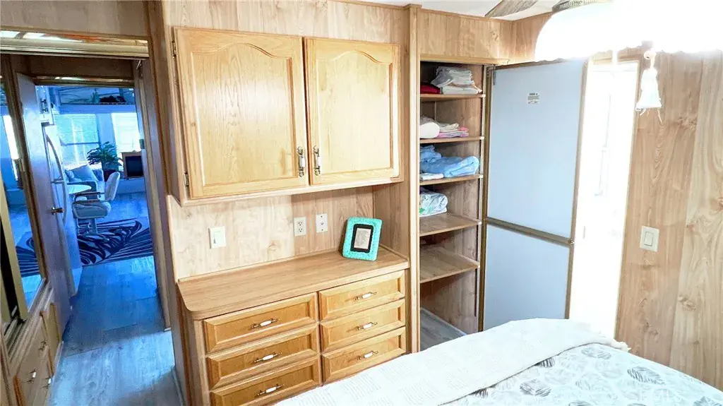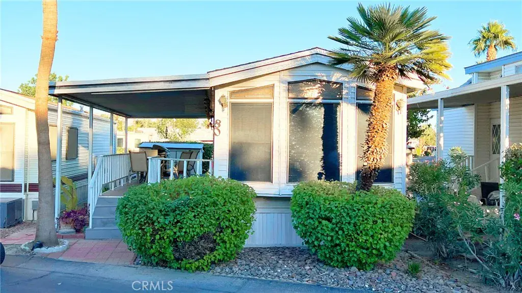 Here is your chance to get into the Palm Springs market affordably where you own the land! Super cute park model that makes great use of the foot print because of its’ well thought out floor plan! The front living area is open to the u-shaped kitchen conveniently hugging the corners, leaving a lot of room for the furniture you want and need to be comfortable. A nook for your TV offers cabinets above and below. There is even an unassuming hutch to store wine glasses, crystal and other knick-knacks. You will be amazed at the amount of storage space in this unit! There is a full sized kitchen pantry, as well as a large closet and drawers in the hallway across from the bathroom. And there are 3 more closets in the bedroom, a built-in desk area and multiple dresser drawers! A queen-size bed fits easily into this space. Oh yeah – there are more storage cabinets above the bed! There is an elevated patio the full length of the unit so you can enjoy the outdoor ambience the Palm Springs area is known for. There is an oversized shed to house your tools, bicycles, etc. If desired, a California room could be added to make this home even more comfortable for your resort living. Won’t last long – see it now! Amazing amenities in this fabulous oasis! 2 large & well-maintained clubhouses plus 3 additional satellite clubhouses, An indoor pool with a large spa and sauna, An olympic-size lap pool, A total of 6 pools, 5 spas and 3 saunas, Sunken, lighted tennis courts, 8 Pickleball courts, An indoor shuffleboard pavilion, 16,000-square foot San Jacinto room with floating hardwood dance floor, and a professional stage, plus a large kitchen, A 3,000-square foot “Our Gang” party room and lounge with a giant fireplace and kitchen, A huge party terrace with mountain views, A fully equipped fitness center, A dance studio, Library, Billiards room, Horseshoe pits, Several laundries, restrooms and bath facilities, Card & hobby rooms with Pottery Kiln, A putting green, Organized fitness activities, Daily activities including dances, dinners and entertainment, Wi-Fi and wired broadband Internet access. Close to everything! You Own Land! Grant Deed Lot with Water, Cable, Trash, and common area included in HOA!