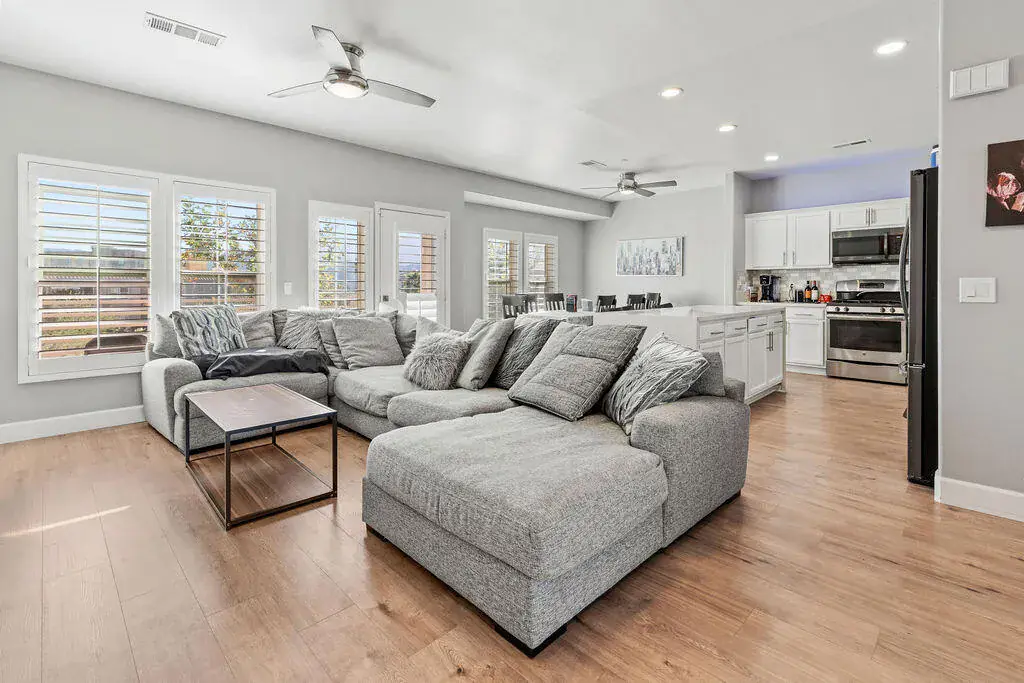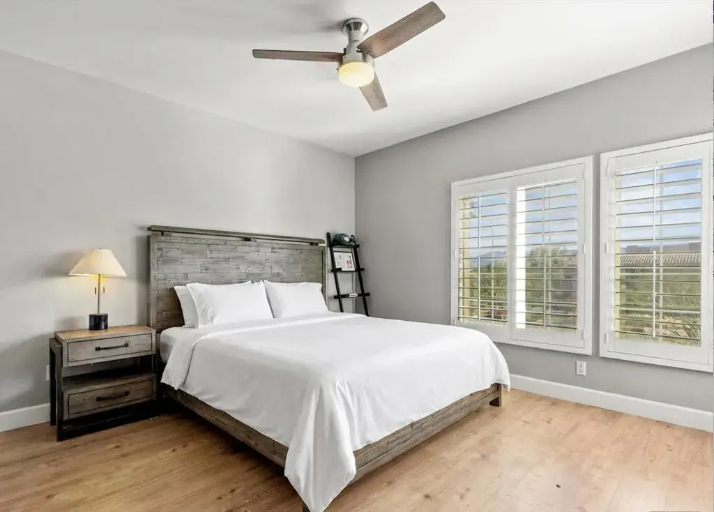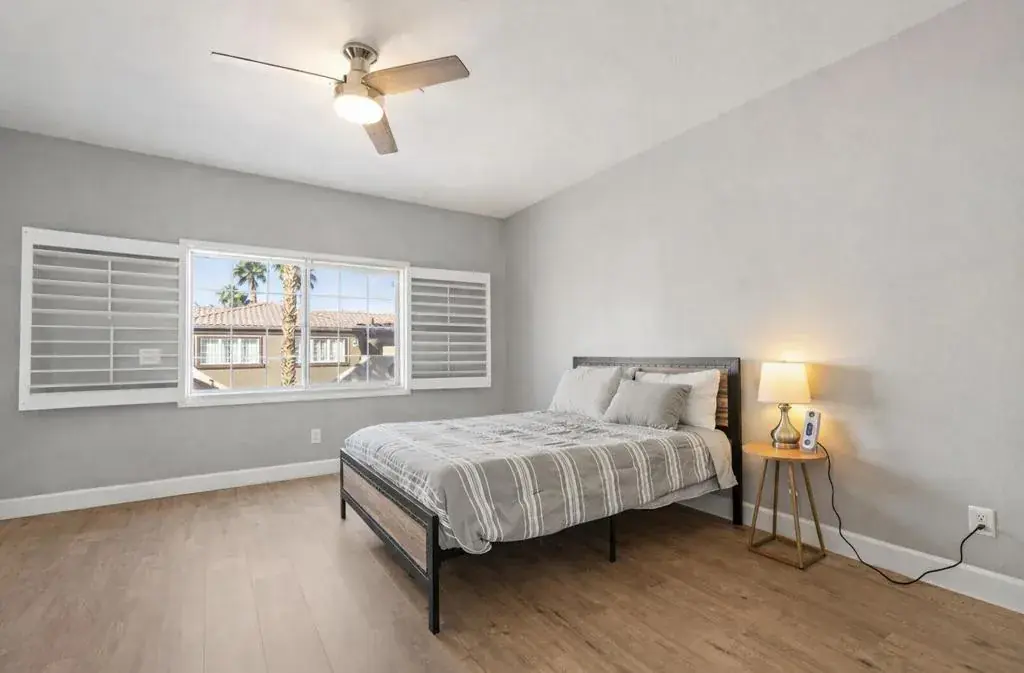 Beautifully updated fully furnished 2 bedroom, 2 bath condominium with approximately $30,000 in upgrades, located in the highly desirable Lantana at Cimarron community in Cathedral City. Enjoy resort-style living in this gated community featuring a sparkling pool and spa, all just minutes from downtown Palm Springs.Ideally situated within walking distance to Cimarron Golf Club, a 36-hole championship course with a public clubhouse, this move-in ready upstairs unit offers the perfect blend of comfort and convenience. Inside, you’ll find new laminate luxury vinyl plank flooring throughout, new quartz countertops, a stunning center island with waterfall edge, sleek recessed lighting, and a newly added designer kitchen backsplash that enhances the open-concept layout–ideal for easy living and entertaining.The home features a spacious primary suite with a renovated shower, an indoor private laundry room, and a versatile bonus room with its own private entry–ideal for a home office, gym, or guest space. Enjoy outdoor living with a large patio plus a second patio overlooking the community pool and spa, complete with beautiful mountain views. A detached two-car garage adds additional convenience and storage.Being offered fully furnished, this property is truly turnkey and ready to enjoy–whether full-time, seasonal, or as an investment.