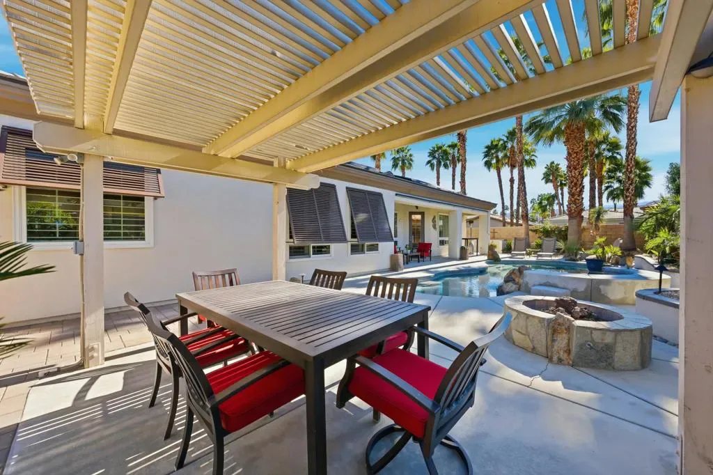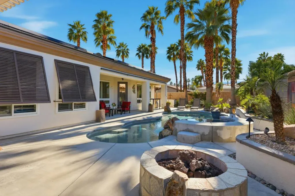 Enjoy resort-style living in the gated enclave of Montage at Mission Hills. Located along the Gerald Ford corridor and Rancho Mirage adjacent, this refined home with detached casita offers space, privacy and effortless indoor-outdoor living. Low HOA dues include a social membership at Mission Hills!! Designed for both relaxed living and memorable entertaining, this beautifully appointed home features a resort-style private yard that defines desert living at its best- featuring a sparkling pool and spa, covered patio, built-in BBQ island, fire pit and multiple spaces to gather, dine and unwind under the sun or stars! With over 3100 square feet of living space and an enviable 3 car garage, this home is the largest model in the community. Inside, the home is just as compelling with its generous living and dining spaces and well-appointed kitchen designed for both everyday ease and entertaining. The spacious primary suite is very peaceful and features two walk in closets, double bathroom vanities and a large tub while additional rooms provide great flexibility for family, guests or home office space. Thoughtful upgrades include solar, updated systems and low-maintenance landscaping to enhance comfort and efficiency. Set within one of the desert’s best positioned gated communities, Montage offers accessibility to world-class golf, dining, shopping and everything the Coachella Valley has to offer! Don’t miss this opportunity to enjoy the space, privacy and elevated living this property offers- homes of this caliber in Montage are rare. Please call today for your private showing!