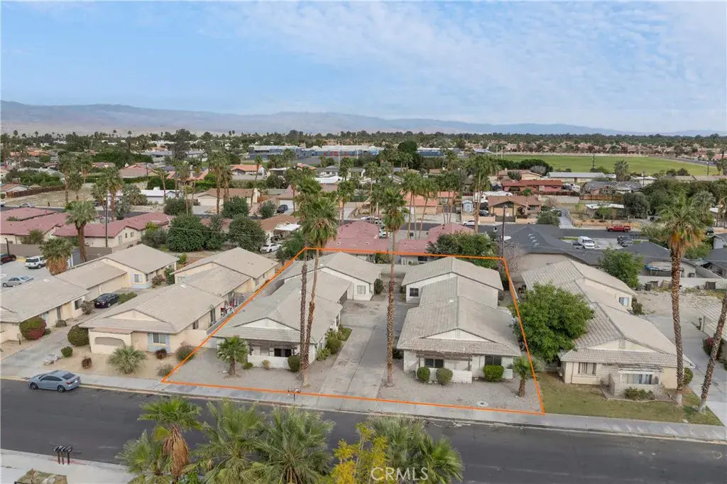 Excellent investment opportunity! Four of thirteen units for sale from this estate. Great residential income-generating Four-plex (2 buildings) in a strong Cathedral City rental market! 34700 Marcia Road, features an over 14,000 square foot private lot. Four 3 Bedroom, 2 Bath homes each with a 2 car garage on a large private lot. Two units are vacant and ready for you and your family to occupy or rent them out. This property is situated in a desirable location with high rental demand, close to recreation, shopping, dining, schools, and major commuter routes! Analysis is based on pro forma rents!
