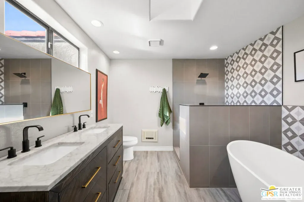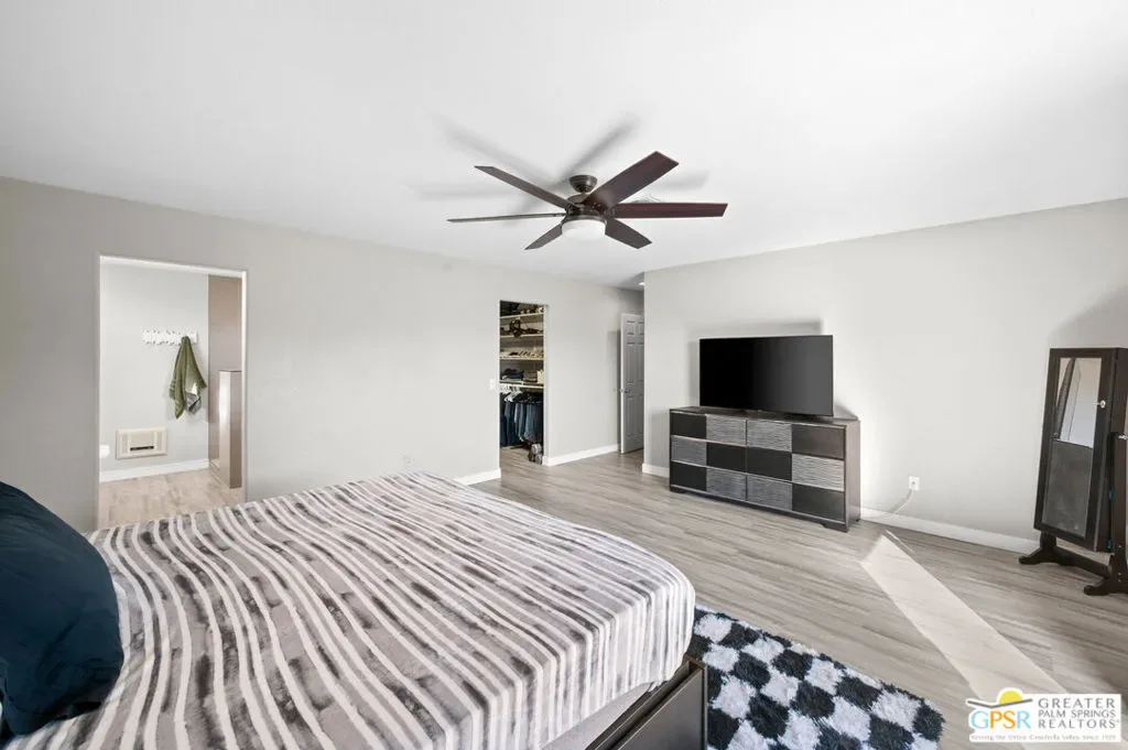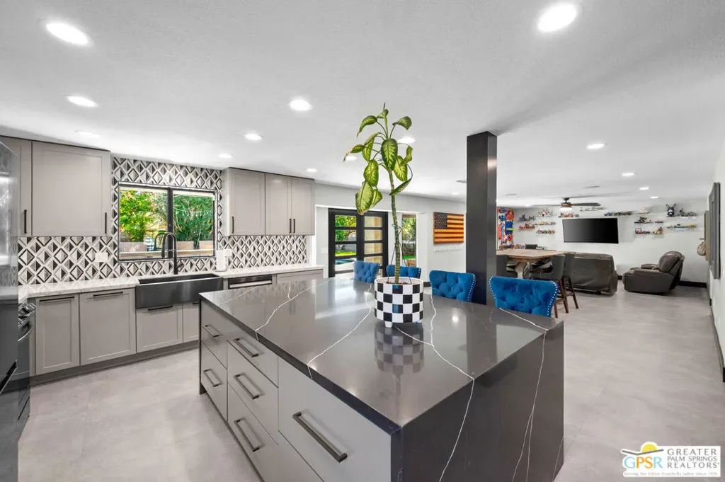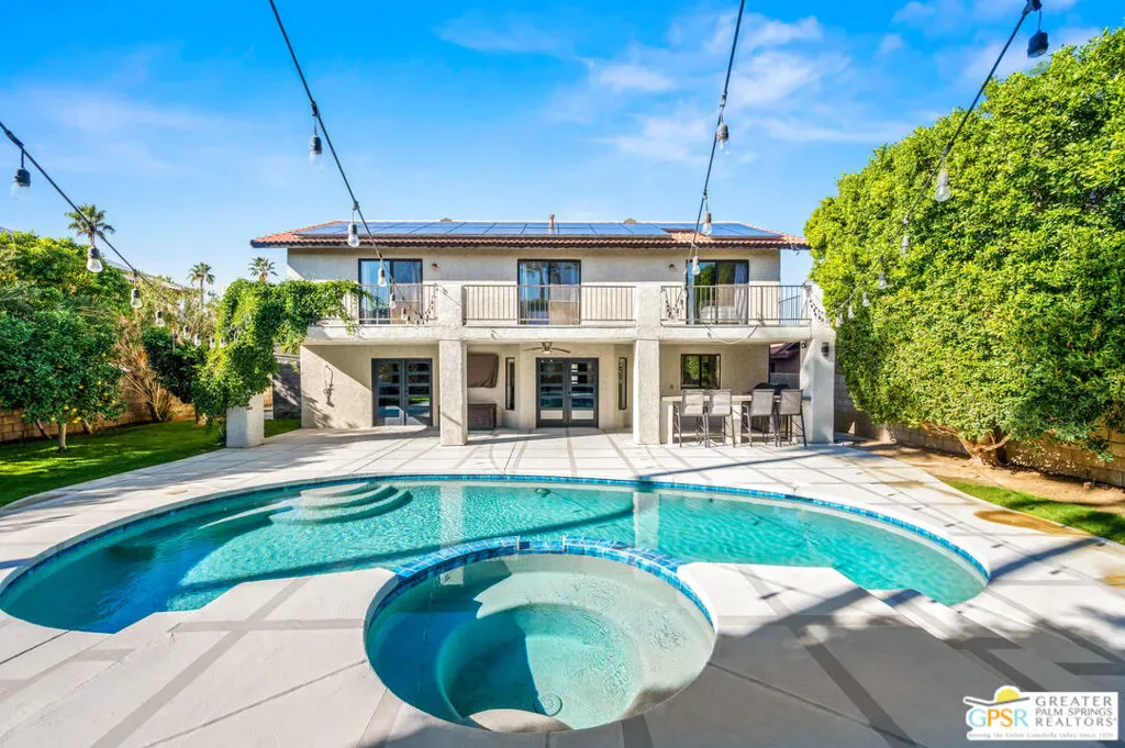 Completely updated and re-imagined single family home located in the Panorama subdivision of Cathedral City with private pool/spa and built-in outdoor BBQ area, lush landscaping and tons of unique charm. Upon entering the vaulted ceiling living room, you are greeted with open spacious living room, large gourmet kitchen with stone-clad island and counters, opening into a dining/family room. The new French doors open into seamless indoor/outdoor living framed with pool/spa with waterfall and an extended covered patio complete with a misting system. All bedrooms are upstairs, 3 of which have doors leading out to a 2nd floor patio with excellent mountain views. Close to shopping and entertainment! Why aren’t you living here yet?