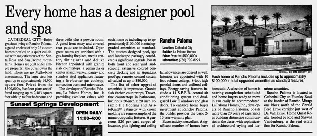 - Located in the Rancho Paloma subdivision, 35373 Vista Montana CT Cathedral City CA is a Single Family for sale in Cathedral City, CA, 92234. It is listed for $875,000 and features 3 beds, 4 baths, and has approximately 2,463 square feet of living space, and was originally constructed in 2006. The current price per square foot is $355. The average price per square foot for Single Family listings in Cathedral City is $190. The average listing price for Single Family in Cathedral City is $353,395. To schedule a showing of MLS#219138857ps at 35373 Vista Montana CT in Cathedral City, CA, contact your James Outland agent at 8057482262.