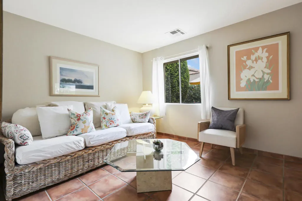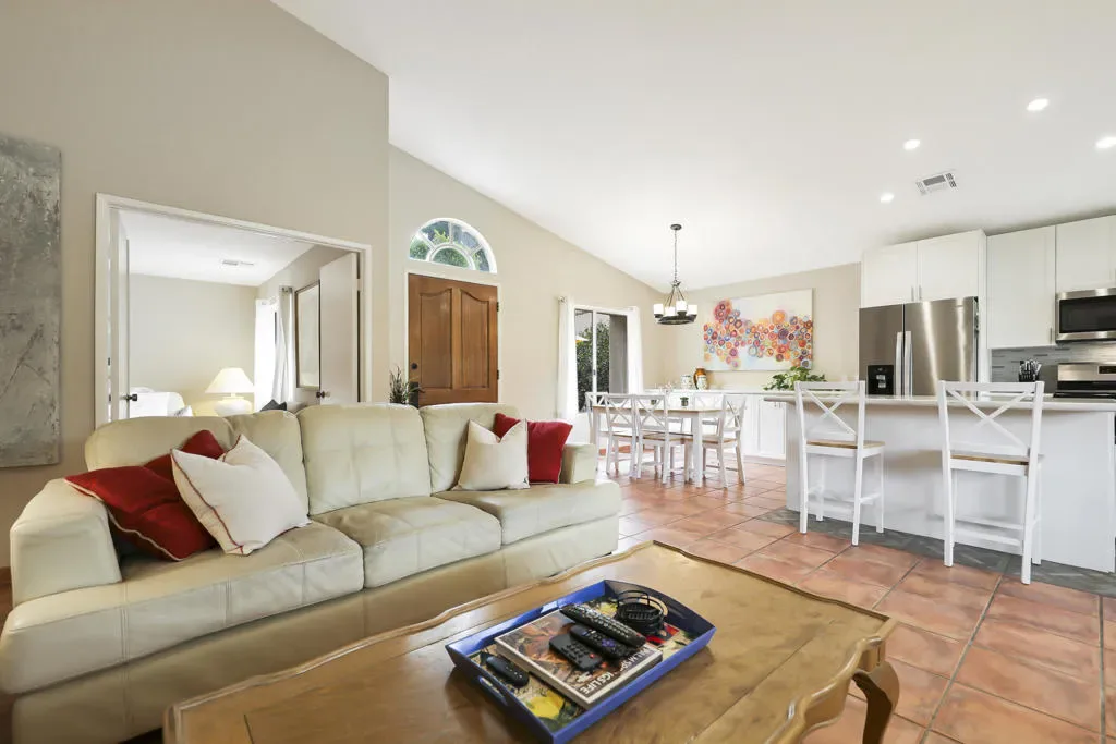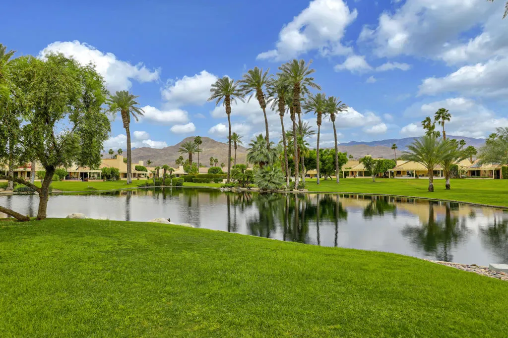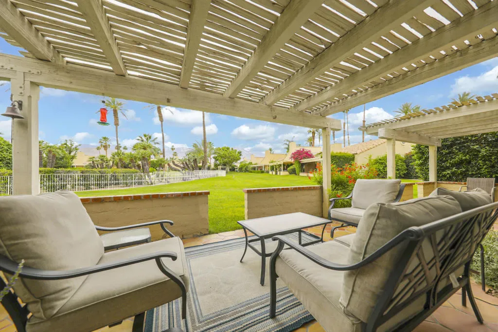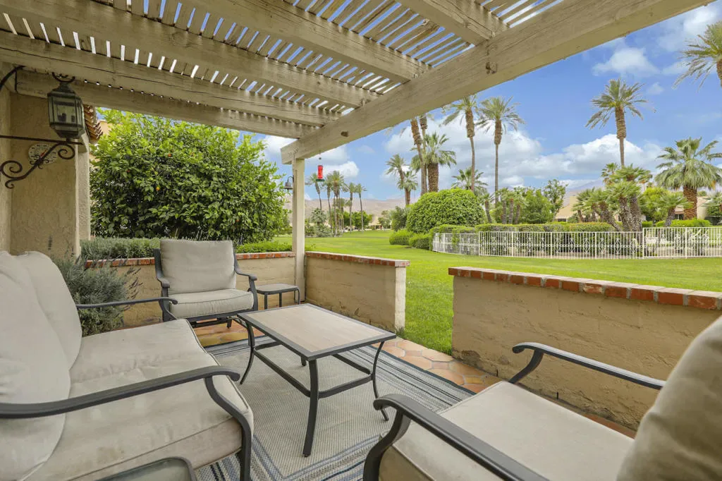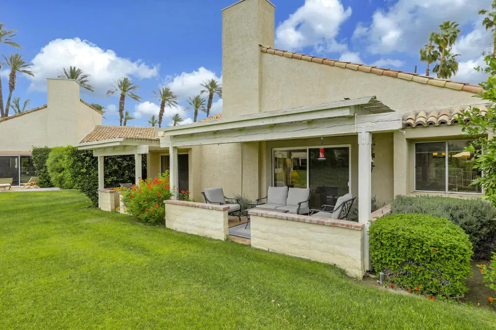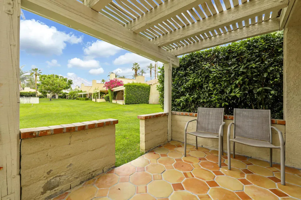 Welcome to this charming, fully detached Spanish-style hacienda, offering breathtaking mountain and pool views. This exceptional property is offered turnkey furnished, making it move-in ready or ideal as a second home or investment.A spacious tiled front courtyard creates a warm and inviting entry, while the beautifully finished rear patio provides the perfect setting for outdoor relaxation and stunning sunset views.Inside, the updated kitchen features elegant quartz countertops, a center island, stainless steel appliances, and stylish cabinetry–perfect for both everyday living and entertaining. The open-concept great room showcases vaulted ceilings, a cozy fireplace, abundant natural light, and picturesque views that enhance the home’s airy feel.Both bathrooms have been tastefully renovated, and the versatile den/third bedroom includes built-in office space–ideal for working from home. A thoughtfully designed split-bedroom layout ensures privacy, with secondary bedrooms well separated.Additional highlights include fully paid solar and a two-car attached garage.Located in the sought-after ”Casitas” at Rio Del Sol, residents enjoy exclusive access to a private lake, two pools and spas, and beautifully maintained green spaces. Additional community amenities include a larger pool and spa, tennis courts, and a dog park.Experience the perfect blend of tranquility, comfort, and vibrant community living–welcome home to Rio Del Sol!