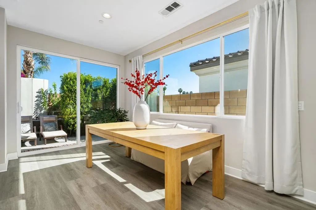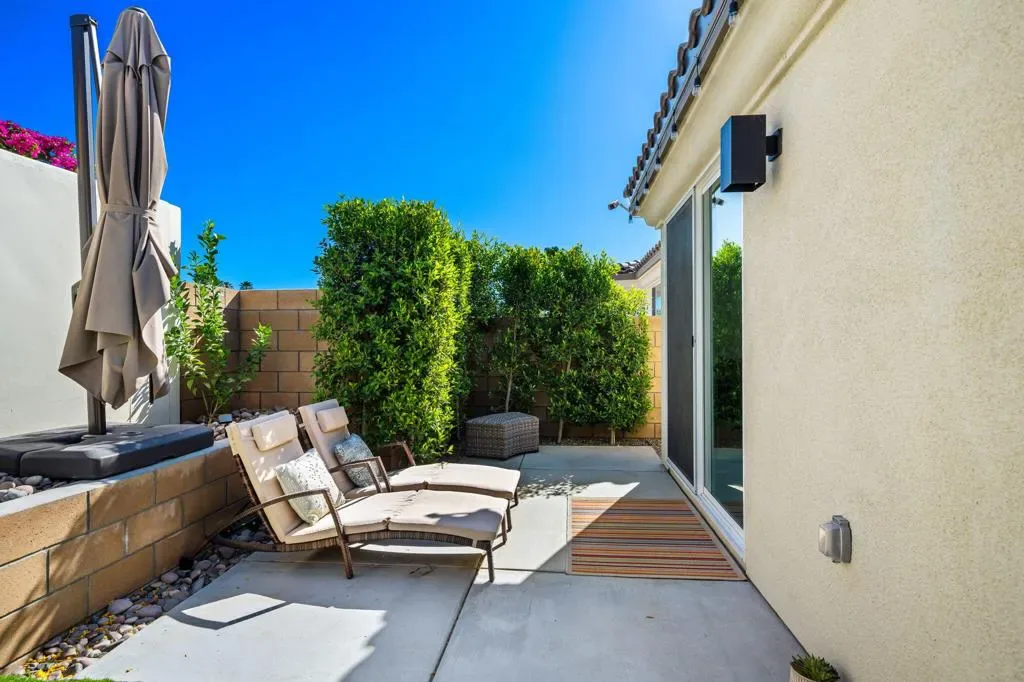 Stunning 2024 Build with Independent Casita in Rio Del Sol, one of the Valley’s premier gated communities. The popular Espana model has typically been in high demand with a waitlist for the next phase release. Home has OWNED SOLAR and tankless hot water heater.This meticulously maintained 2024 construction residence perfectly balances contemporary style with the relaxed, sun-drenched lifestyle of the Coachella Valley. The main house features a sophisticated open-concept layout with a spacious primary bedroom, large ensuite bath and customized walk-in closet. A versatile study complete with a surface mounted sliding door is ideal for a home office, media room or guest room. At the center of the home is an upgraded kitchen, finished with premium cabinetry, high-end stainless appliances, and designer quartz countertops–perfect for entertaining. For ultimate flexibility, the independent casita with a private entrance provides a quiet studio/office space or extra bedroom for guests; also perfect for multi-generational living. Step outside to a professionally landscaped backyard, meticulously designed to blend lush aesthetics with low-maintenance desert greenery, creating an effortless outdoor oasis.Community amenities include a lake, heated pool and spa, tennis courts, clubhouse, and dog park.