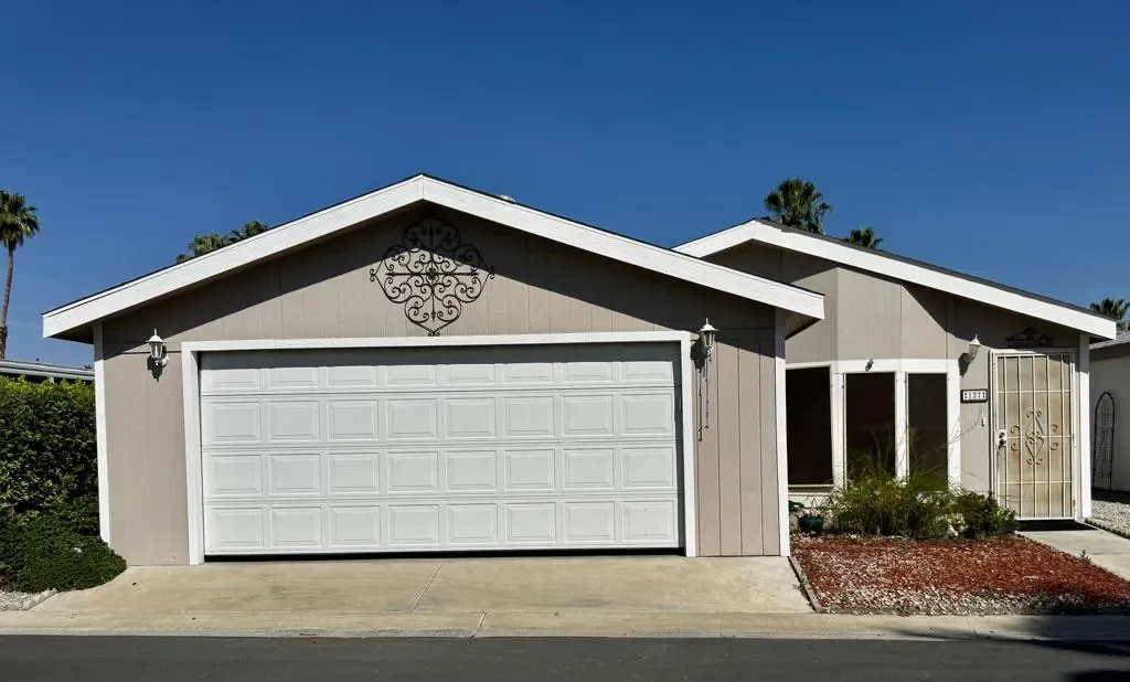 **More photos coming soon** Located in The Canyon, a gated community in the heart of Cathedral City. This 2002 Skyline double-wide manufactured home offers a comfortable and easy to maintain living environment designed for everyday convenience. Interior features a bright, open layout that allows for a natural flow between the main living areas and kitchen creating a space that feels inviting and functional. Additional features include laminate flooring newer HVAC and indoor laundry. A covered patio extends the living space outdoors offering an area to relax. The attached garage offers covered parking and or additional storage.