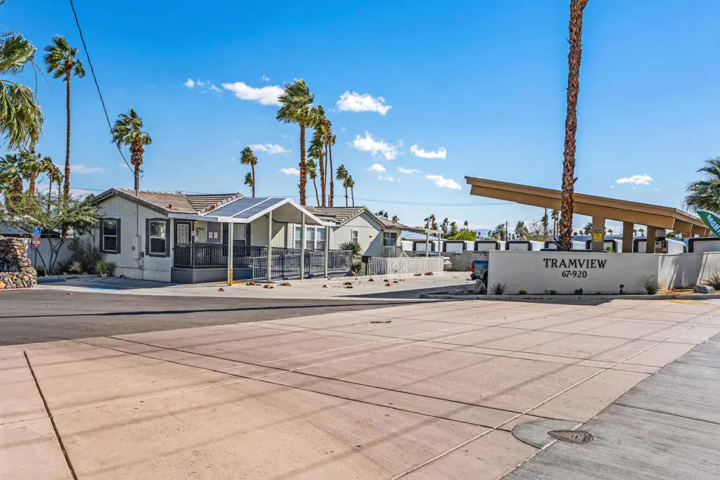 Located in the desirable Tramview Mobile Home Park, a historic 55+ manufactured home community established in the 1950s and known for its active lifestyle and central Coachella Valley location, this well-maintained home offers comfort, convenience, and value. Residents enjoy resort-style amenities including a pool and spa, clubhouse with kitchen and social spaces, shuffleboard courts, billiards, and organized community activities.This 2 bedroom, 2 bathroom manufactured home (1989, approx. 840 sq ft) is ideally situated within the community and features: In-unit laundry, Two parking spaces, Private front and back patios for outdoor desert living, Newer A/C and Furnace (2022), Newer Electrical Panel (2022), Newer Windows and Hot Water Tank (2024), Exceptionally clean and truly move-in ready condition. Tramview offers convenient access to shopping, dining, entertainment, and Palm Springs area attractions while maintaining a welcoming neighborhood feel. Note: Annual Lease Amount is $11,700 ($975 per month)