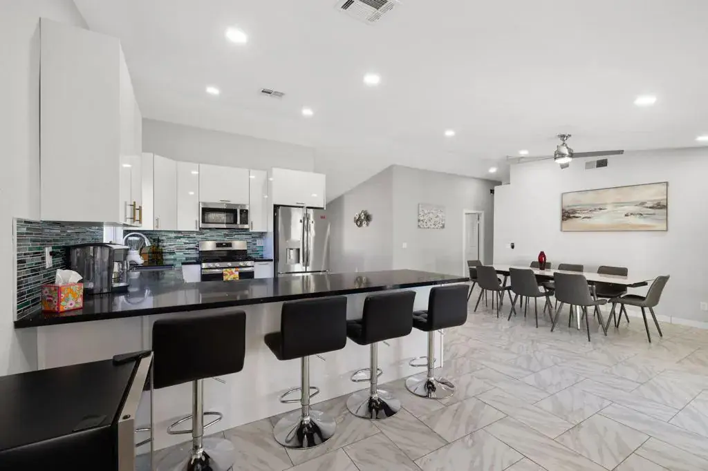 This fully furnished property captures breathtaking mountain views from the sparkling pool and expansive outdoor living spaces. Designed with entertaining in mind, the home offers a seamless flow and thoughtfully crafted architectural details that create both comfort and sophistication. Step through the front door into a light-filled great room that effortlessly connects to the spacious living area and beautifully appointed kitchen. The open-concept floor plan is enhanced by soaring ceilings, abundant natural light, and high-end finishes throughout, creating an inviting yet refined atmosphere. Recently remodeled, the home showcases modern upgrades at every turn, including a PebbleTec pool finish and an expansive patio ideal for hosting gatherings or enjoying quiet desert evenings under the stars. This property delivers the perfect blend of style, comfort, and desert living. To fill out an application visit this link. There is a $39 fee: https://apply.link/8snfExI