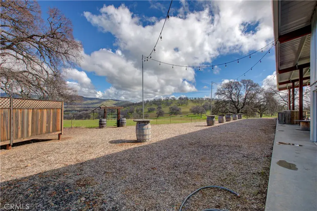 New Improved Price! Discover tranquility and wide-open spaces with this incredible mountain-view property nestled in the heart of Cathey’s Valley. Situated on 103 acres of fully fenced agricultural land, this unique Barndominium-style two-story home blends rustic charm with modern comfort. The home features 2 bedrooms, 1.5 bathrooms, and offers 1,932 square feet of interior living space. An additional approx. 3,750 square feet of covered exterior barn-style area provides endless possibilities for entertaining, hobbies, or livestock. Step into a beautifully designed farmhouse-style interior. The main level boasts an open floor plan with a cozy family room, spacious dining area, stylish kitchen, laundry room, and half bath. A large glass-panel roll-up door seamlessly connects the indoors with the outdoor entertaining space, offering breathtaking views and fresh country air. The chef’s kitchen is equipped with KitchenAid appliances, including a propane stove, microwave, dishwasher, refrigerator, and trash compactor. A charming breakfast bar and large center island with pendant lighting add both function and flair. Upstairs, a runway-style hallway leads to the primary bedroom suite, complete with a luxurious slate-tiled shower, soapstone vanity, and farmhouse touches throughout. The second bedroom includes built-in bunk beds, barn doors, and a ceiling fan perfect for family or guests. This steel-framed home is loaded with upgrades: ceiling fans, upgraded cabinetry, modern flooring and lighting, central heating and air, and a fire sprinkler system for added peace of mind. Outside, the rolling hills are ideal for both relaxation and agriculture, featuring a seasonal pond, underground electricity, well and septic system, water tanks, storage container, and a gated entry. Whether you’re looking for a peaceful retreat, a place to entertain, or a property ready for livestock, this Catheys Valley gem offers it all.