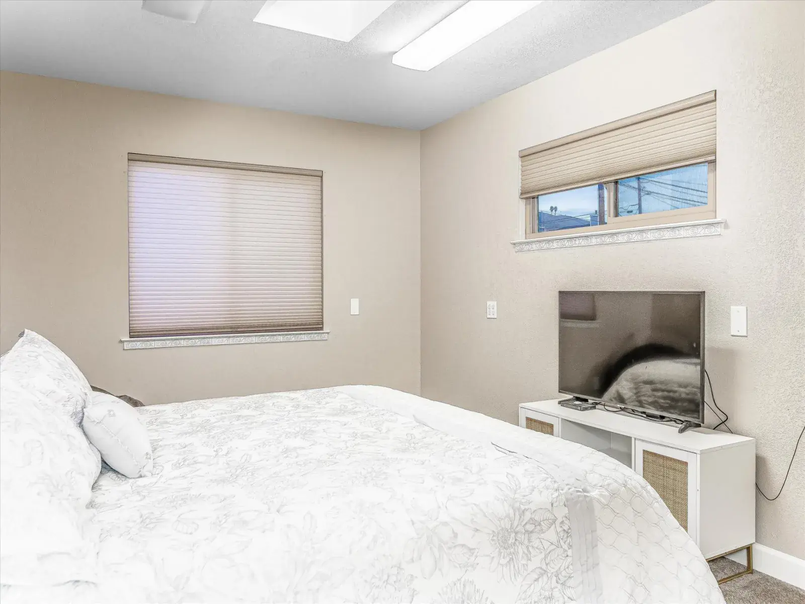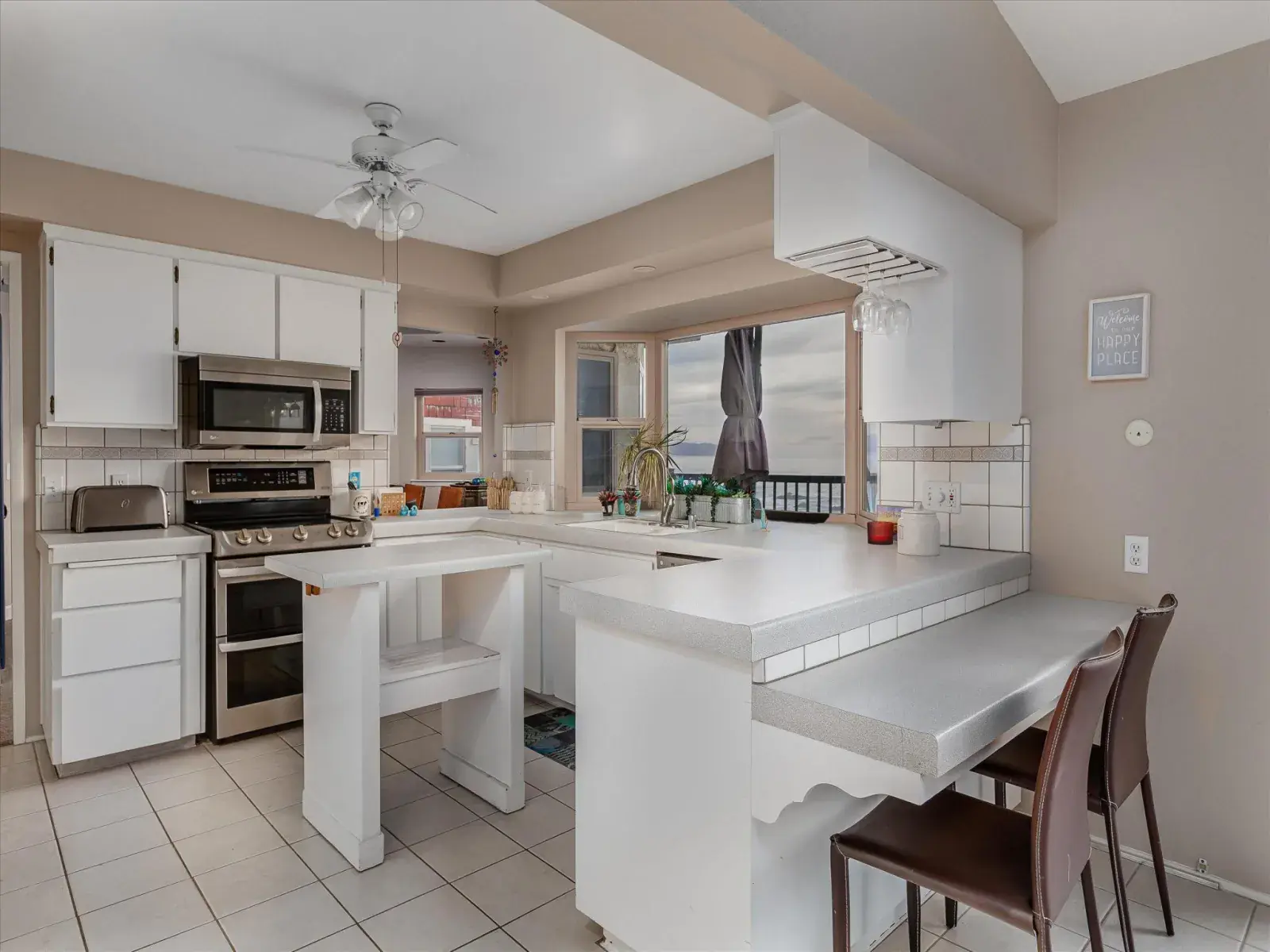 Upstairs, an updated living space offers privacy and flexibility, featuring two additional bedrooms, a bathroom, and an efficiency kitchen with optional private access. Expansive windows fill the space with natural light and showcase incredible ocean views.