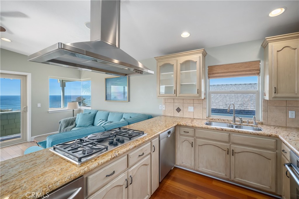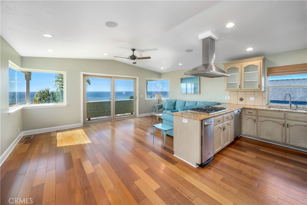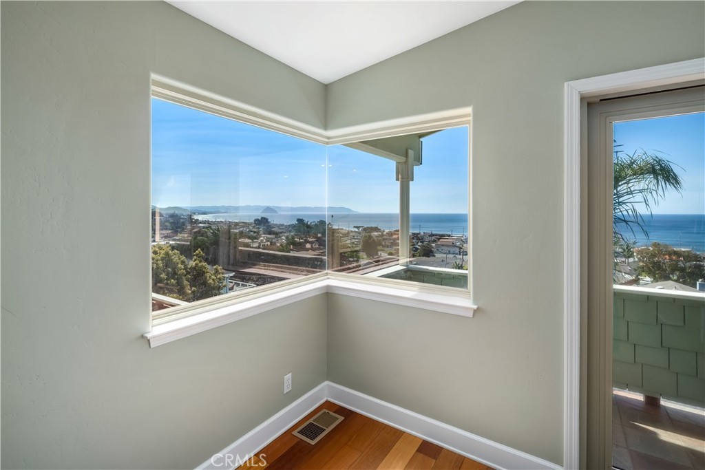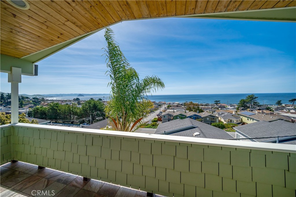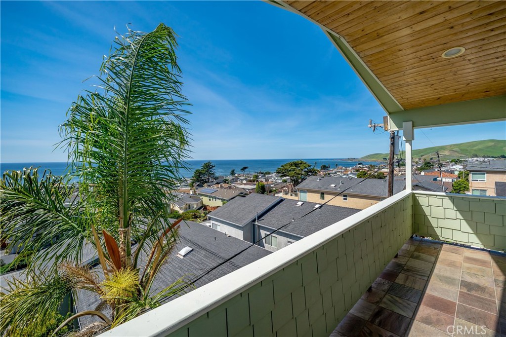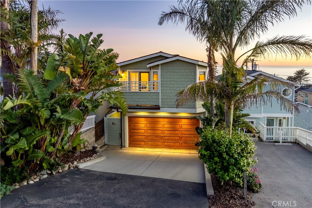 Perched in a premier Cayucos location just three blocks from the beach, 1000 Saint Mary Ave offers coastal living with tropical charm. A gated entry welcomes you into a lush setting of mature palms and banana trees, while ocean views greet you at the door. Inside, hardwood floors, a fireplace, and whole-home heating, A/C, and surround sound create comfort year-round. The main living level features a spacious layout ideal for large families, with a stunning ocean-view deck complete with gas hookups, perfect for outdoor cooking and entertaining. The primary suite is conveniently located on the main level, offering its own balcony, walk-in closet and a jacuzzi tub in the bathroom. Downstairs are two additional bedrooms, a full bathroom and a finished garage with built-ins and sink. The lower level includes a wine cellar and an unfinished bedroom and bath with plumbing in place, offering potential for future completion. Enjoy ocean sounds, cross breezes, and views from nearly every room. The fenced backyard, irrigation system, and walkable access to town and pier complete this exceptional coastal retreat.