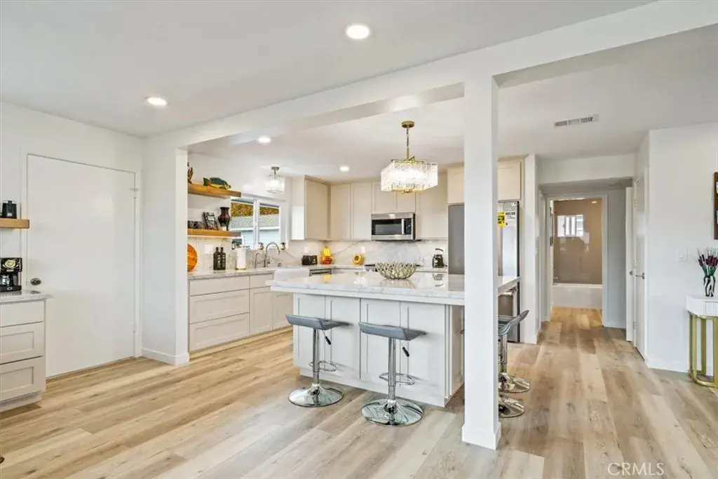 The second home at 33 N. 3rd Street has been fully renovated with 3 bedrooms and 1 bath, matte porcelain slab countertops, Master Craft cabinetry, updated systems, its own laundry, and an attached garage.