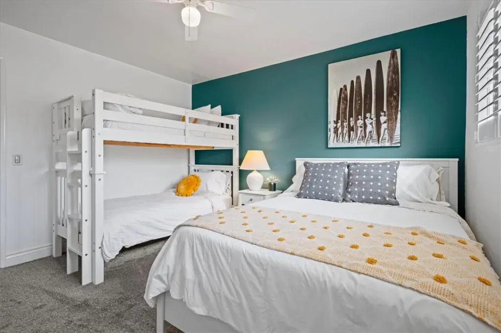 The property also features a detached one-car garage, and the buyer has the option to purchase the home furnished in a stylish coastal, cozy, contemporary theme—creating a warm and inviting atmosphere that perfectly complements its relaxed beachside setting.