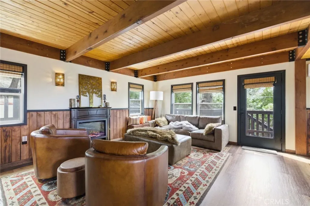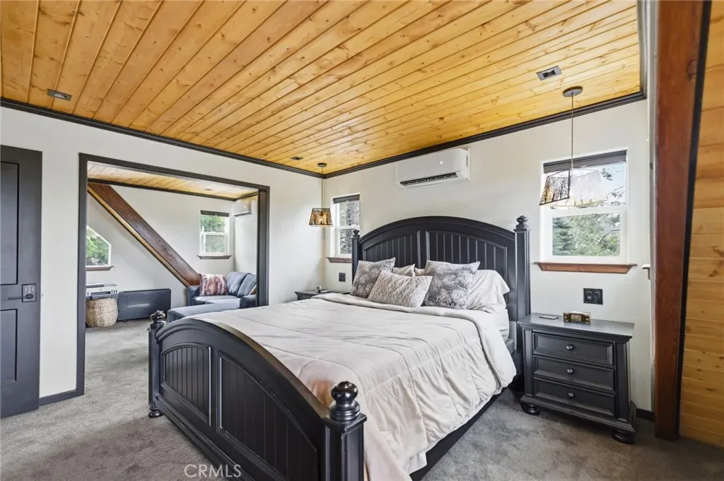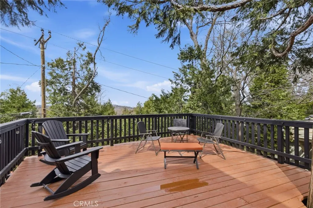 The Ultimate Modern-Rustic Retreat WITH Lake Views in Cedar Glen!! Experience the perfect harmony of vintage mountain charm and 21st-century luxury in this meticulously restored masterpiece. Originally erected in 1938, this home has undergone a massive, complete transformation that leaves no stone unturned. Situated on a premier corner lot bathed in natural light, the property features a rare mountain luxury: abundant street-level parking and a brand-new oversized carport. Step inside to a seamless interior featuring upgraded luxury vinyl flooring, stunning pine board ceilings, and synergistic wainscoting. The chef’s kitchen is a true showstopper, boasting custom cabinetry, sleek quartz countertops, a farmhouse copper sink, and a beautiful kitchen island. The main level flows into a spa-like bathroom complete with a two-person steam shower and electric heated floors, while the upstairs primary suite offers a new cedar walk-in closet and an oversized Juliet balcony with scenic views of Lake Arrowhead. Unique to this property is the intentional “Guest Stateroom” buildout, featuring a private half-bath with a barn door and a new kitchenette—the ideal setup for a private guest escape or high-end rental. Peace of mind comes standard with “over-built” infrastructure rarely found in the San Bernardino mountains. This retreat is prepared for every season with fireproof Rockwool insulation, shear walls, a radiant barrier foil, and a new 200 Amp service panel equipped with a Kohler generator and automatic transfer switch. High-capacity climate control is provided by a 36k multi-zone heat pump and a tankless water heater. The exterior is equally impressive, featuring a brand-new roof, energy-efficient vinyl windows, and a massive 900-square-foot wrap-around deck designed for entertaining against a backdrop of lake views. Every inch of the lot is thoughtfully curated with railroad tie fencing and terracing, offering a “new house” quality that is truly impossible to replicate.