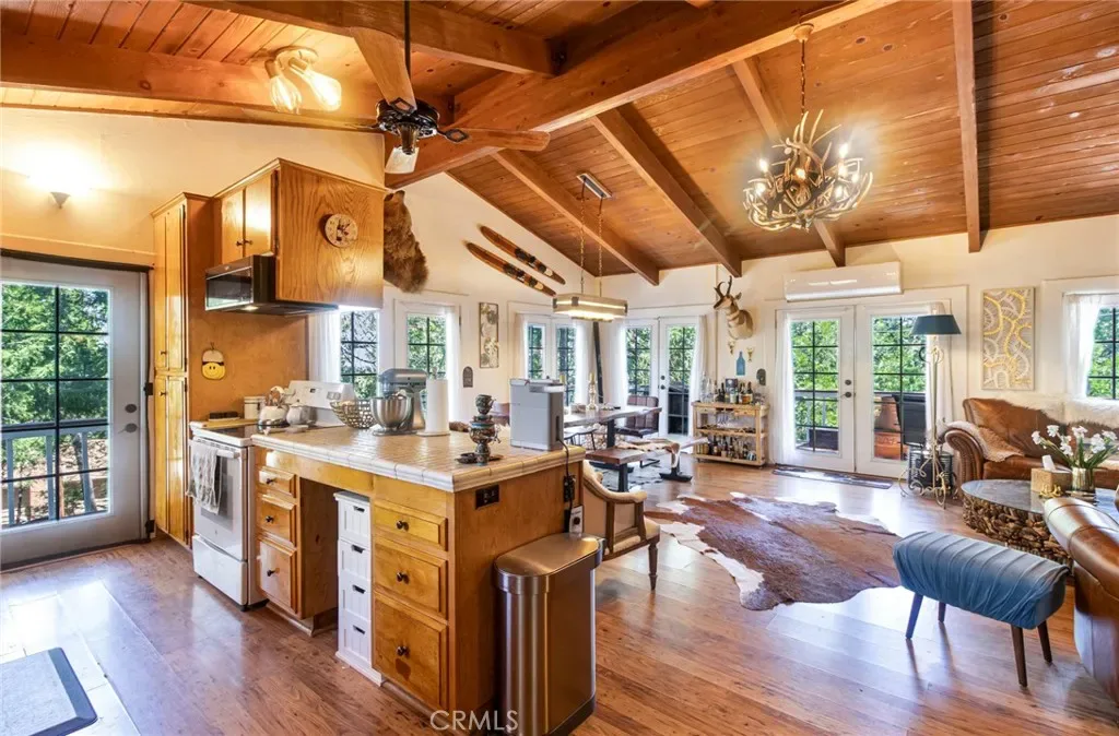 CEDAR GLEN MOUNTAIN RETREAT ~ Nestled in the peaceful forest of Cedar Glen, this charming property offers the perfect blend of privacy, nature, and mountain living. Located just minutes from Lake Arrowhead, this home is ideal as a full-time residence, weekend getaway, or investment opportunity. Features include a spacious wrap-around deck perfect for entertaining, mini-split AC & heating systems, open layout with high ceilings upstairs, and a bonus kitchen downstairs. The home is filled with high-end furniture all included in the sale. Property also includes rare features for the mountains like a detached garage and large backyard, great for enjoying the peaceful forest setting. Experience the best living the mountains have to offer, don’t miss this opportunity to own this tranquil retreat in Cedar Glen!