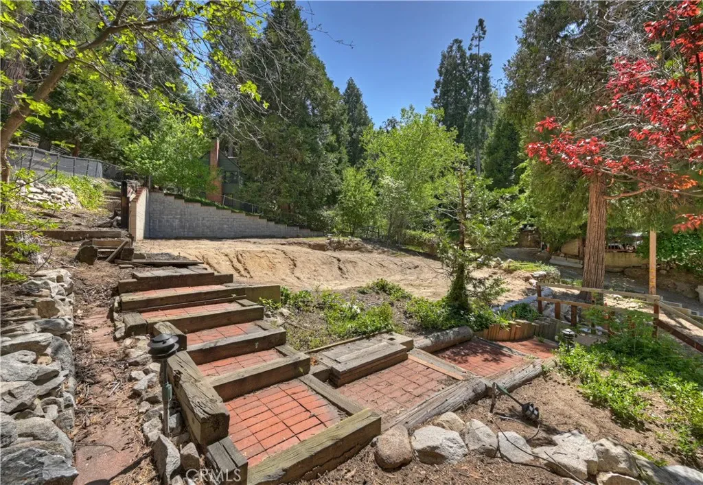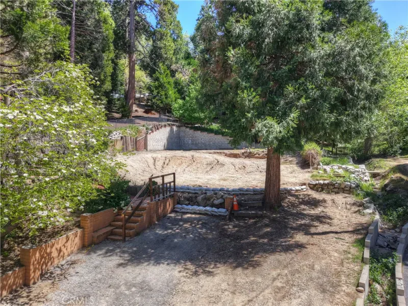 Ready-to-go vacant lot with LASCD WATER AND SEWER!! Water meter up-to date. House burned down a few years ago so there are some beautiful mature plants, brick steps and walkway and front garden area remaining. Additionally established herbs like rosemary, mountain sage, honeysuckle, dogwoods and even a fruit tree are blooming. Rear retaining wall remains. Stream runs along the right side of the property and is contained or lined with large granite hand picked stonework creating a really pretty mountian aesthetic. Pretty setting and gentle lot and building site. In-town location just off Hook Creek. Nice setting yet just up from the little mountain town of Cedar Glen offering shops, the post office, restaurants, a hardware store, flower shop and Cedar Glen Fine Foods Market, not to mention the Malt Shop just up the road!!! The lot is very accessible just off a year-round maintained road. In case you need more to do, Lake Arrowhead Village is about 10 minutes away.