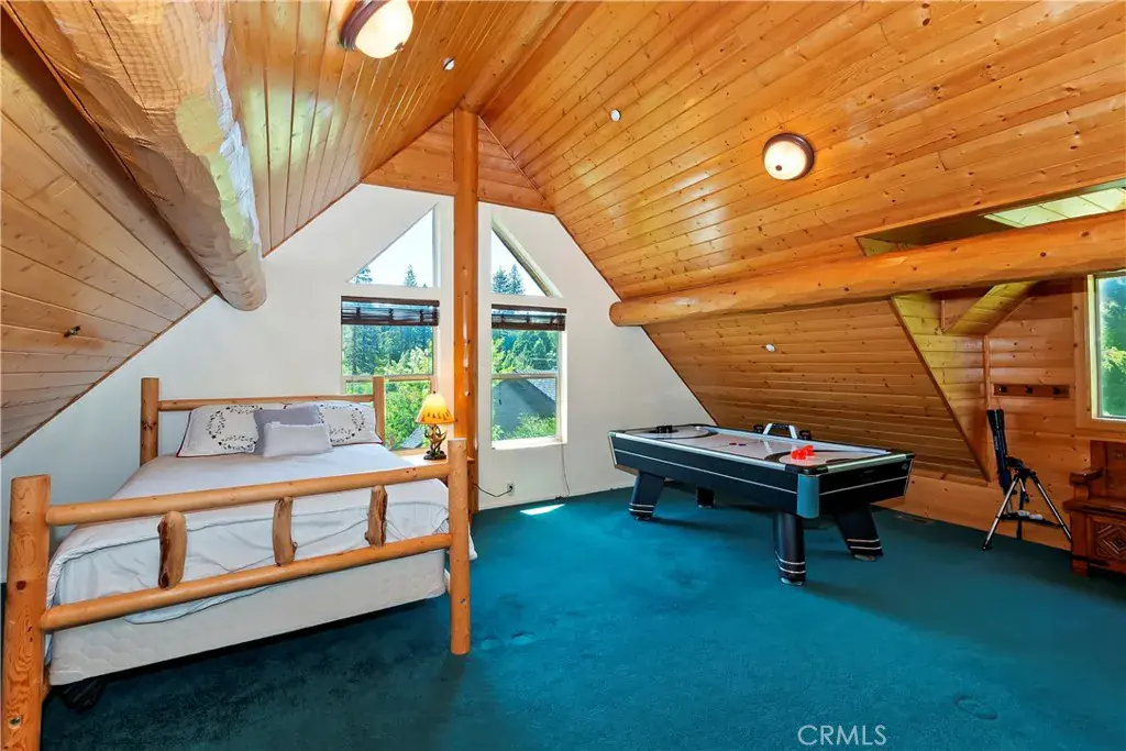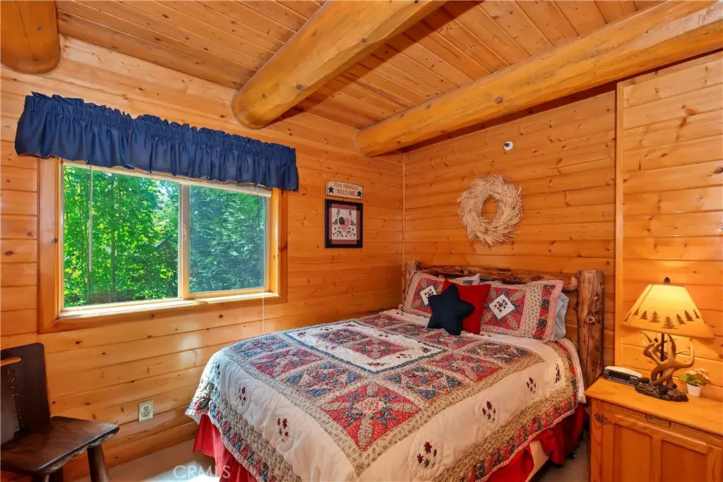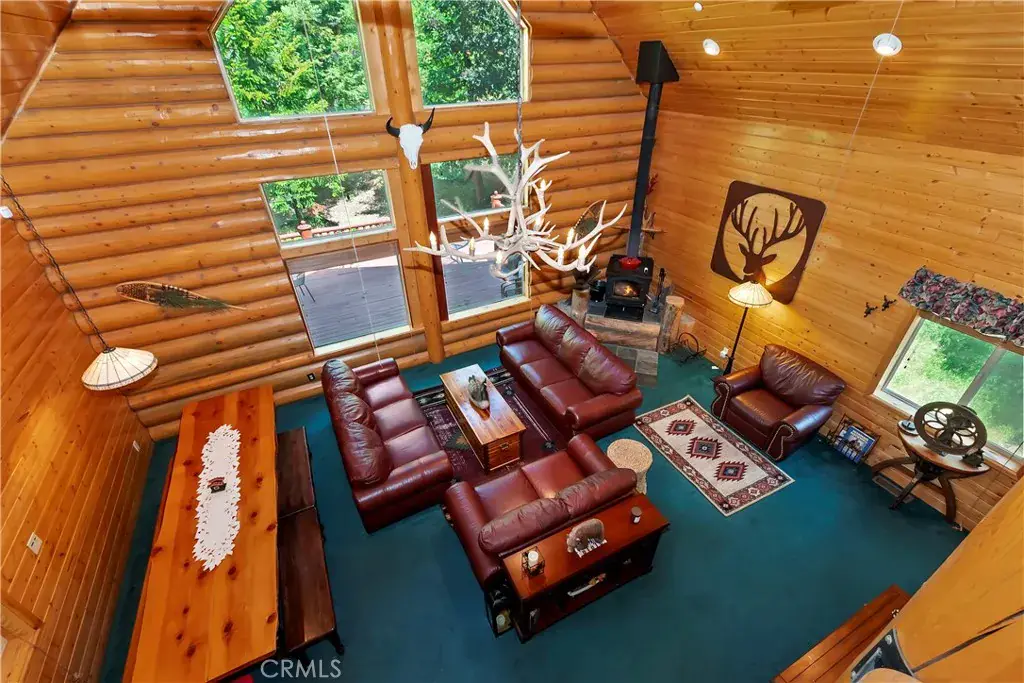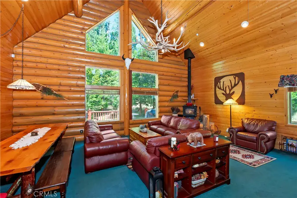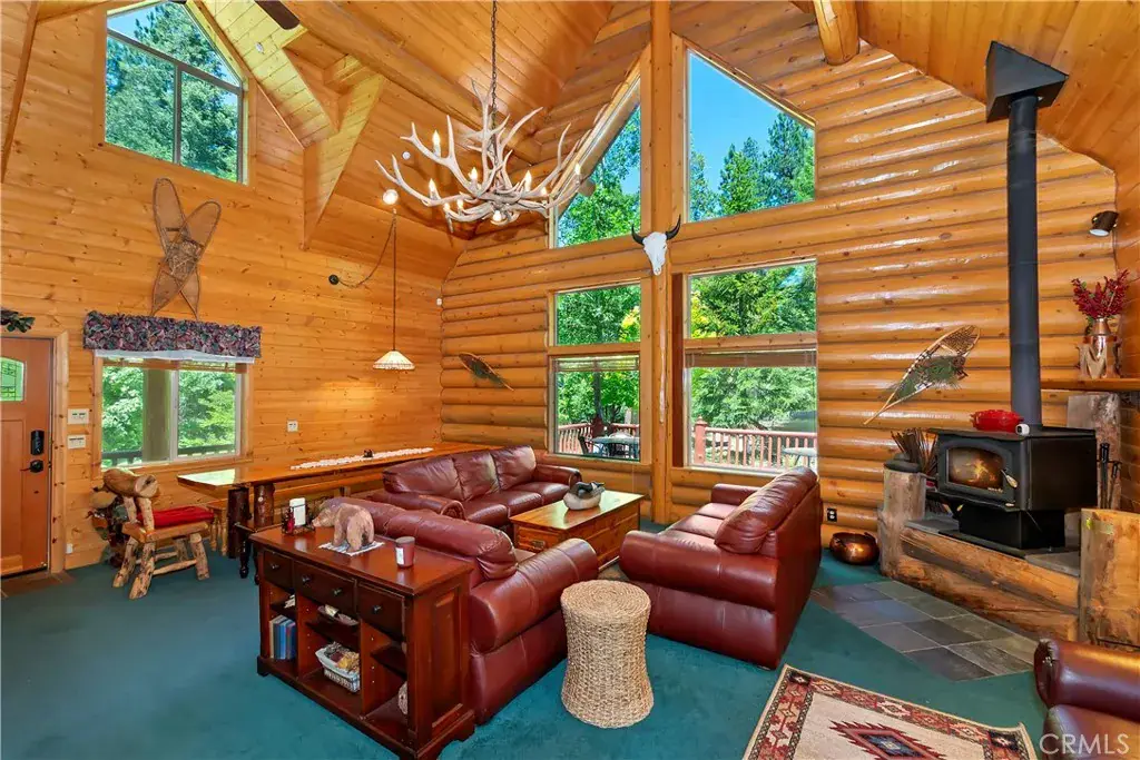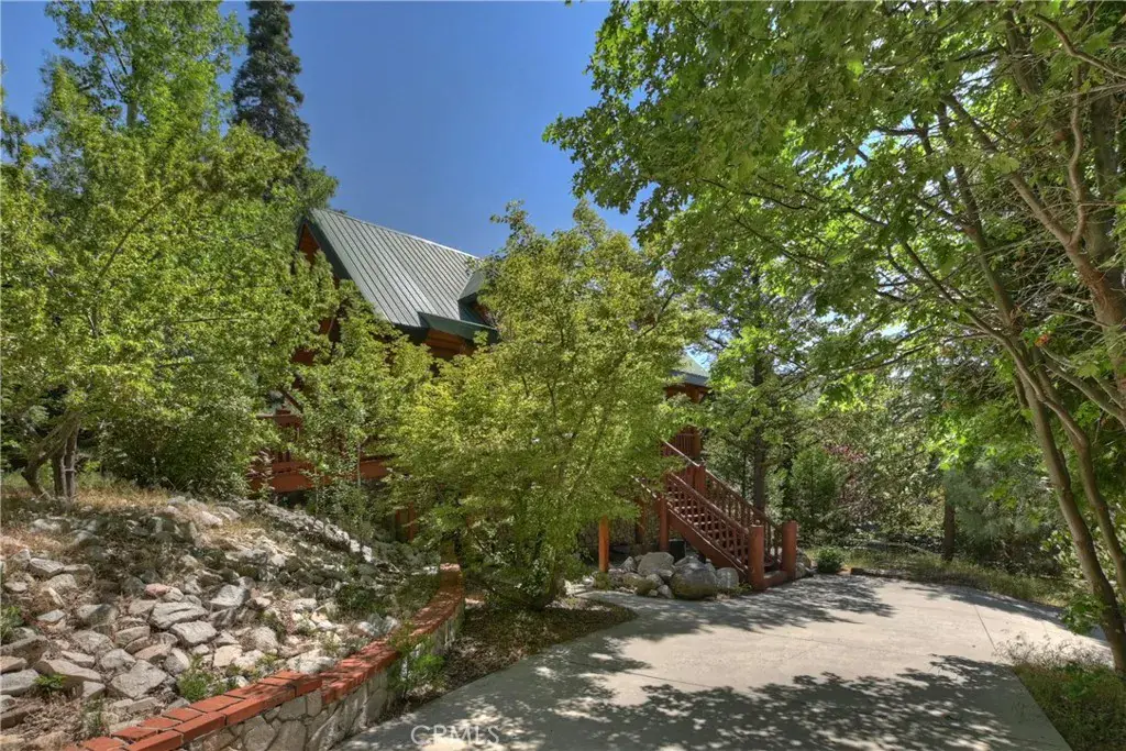 Take the charming bridge over the creek to get to this enchanting Lake Arrowhead real log home with level entry, offered fully furnished and ready for immediate enjoyment or as a perfect Airbnb investment property! Amazing location, perfectly nestled in a beautiful, park-like treed setting. From the moment you arrive, the inviting expansive front porch and wrap-around deck promise countless moments of relaxation and entertaining under the pines. Inside, you’ll be greeted by a warm and open living room featuring vaulted ceilings and a stunning wall of windows that seamlessly brings the breathtaking mountain surroundings indoors. A cozy fireplace, paired with the open-concept dining area and kitchen, creates the perfect space for gatherings, holidays, or tranquil evenings in. This spacious home offers four bedrooms and two full bathrooms, with two bedrooms and a full bath on the main level, two more bedrooms, a full bath, and a family room on the lower level, as well as a charming loft which can serve as a game room or fifth bedroom on the top floor—each room offering serene views of the surrounding forest. Tons of off-street parking and even additional room to store your boat or trailer. Located just minutes from all the year-round attractions and amenities of Lake Arrowhead, this home is a rare blend of rustic elegance and modern comfort. Whether you’re looking for a full-time residence, vacation getaway, or investment opportunity, this log cabin is truly a mountain escape worth discovering.