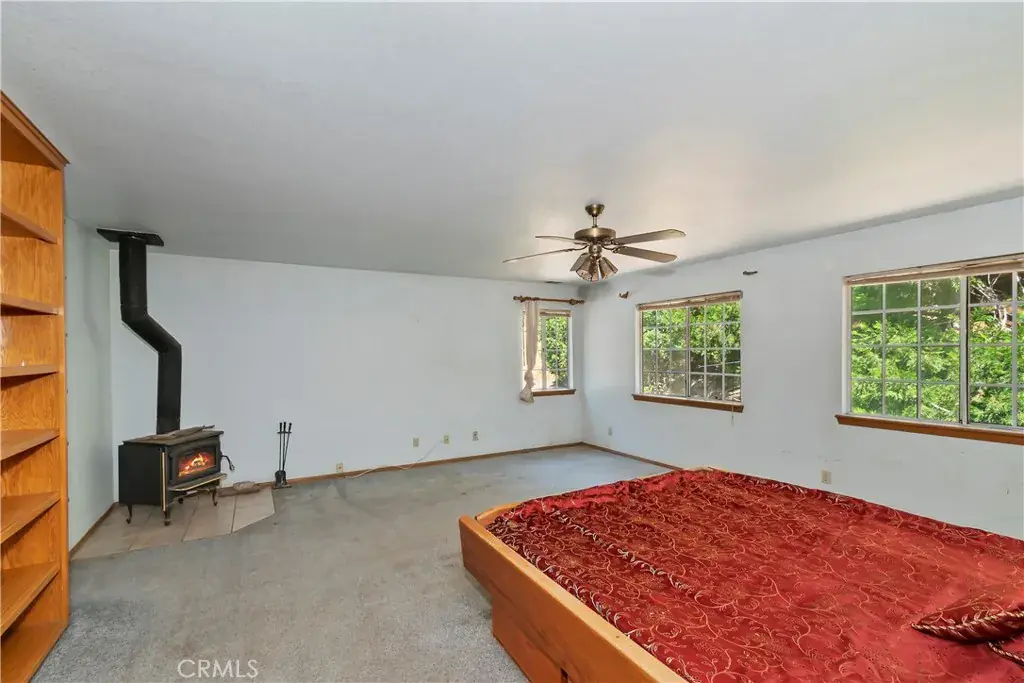 This diamond in the rough is located in one of the best neighborhoods in Cedarpines Park. You enter through a large, covered deck that looks over the yard. The open concept living room-dining room combo has an attractive rock fireplace focal point with shelves on either side. The kitchen is huge and includes a double oven, center island and stainless appliances. On the main level there are two bedrooms that are down a hall that could be a private suite. Plus, a large laundry room. Upstairs are the rest of the bedrooms and a family room. The primary bedroom is huge and has its own wood stove, full bath and large walk-in closet.