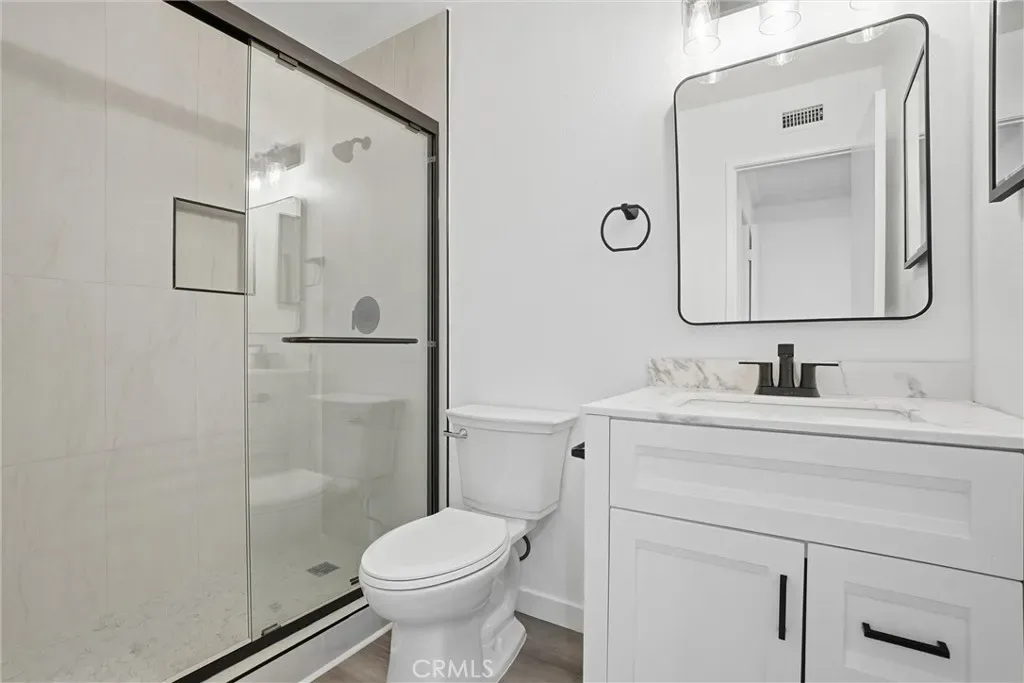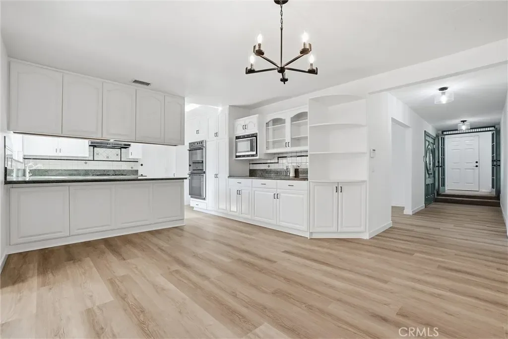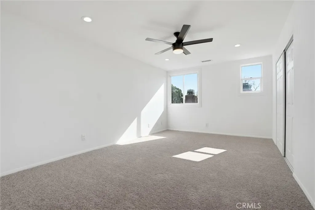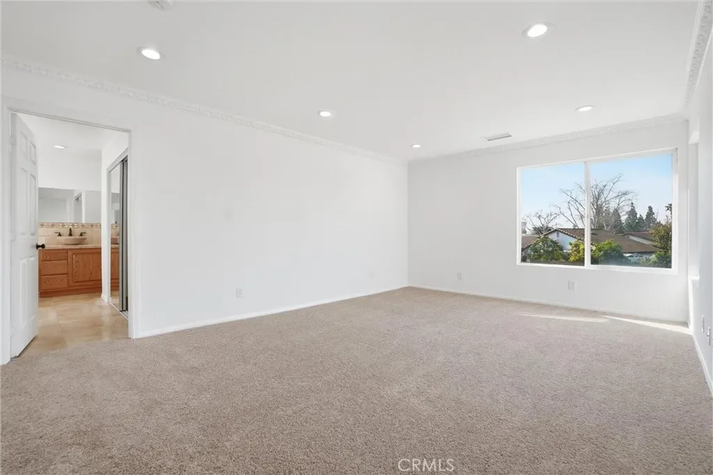 A rare opportunity in Cerritos, this expansive and recently renovated home is designed for multigenerational living or rental potential, offering 7 bedrooms, 4 full bathrooms, and approximately 3,556 square feet of living space on a private 8,139 sq ft lot. Thoughtfully designed with two distinct living wings and ADU potential, the layout offers flexibility for extended family, guests, or future income. The main level offers a spacious layout with soaring beamed ceilings, a gourmet kitchen with newly painted cabinetry, and both formal living and family rooms, each with its own fireplace. This wing includes four generously sized bedrooms, highlighted by a luxurious primary suite with vaulted ceilings, crown molding, an arched sitting area, walk-in closet, private fireplace, and a remodeled bathroom featuring a walk-in shower and new shaker-style vanity. An additional remodeled hall bathroom serves the remaining bedrooms. The upper-level living wing functions like a private apartment, featuring an open-concept kitchen that opens to a living room, three bedrooms including a primary suite with a resort-style bathroom complete with a soaking tub, dual sinks, and walk-in closet, a full hall bathroom, and a stackable washer and dryer. With both interior and exterior access, this space offers privacy and flexibility while remaining part of the main residence. Recent upgrades throughout both levels include new luxury vinyl plank flooring, new carpet, fresh interior paint and baseboards, updated panel doors and hardware, new closet doors, light fixtures, and ceiling fans. Additional improvements include newer windows, dual HVAC systems with newer thermostats, solar panels, a water softener, a new water pressure valve, upgraded copper supply lines, and built-in garage cabinetry. The backyard is designed for entertaining, featuring a covered outdoor pavilion with wood construction, brick columns, a shingle roof, and electrical, ideal for gatherings and outdoor dining. The property also offers block walls, brick and block planters, mature trees and shrubs, and a combination of brick and concrete hardscaping. The front yard features landscaped planters, brick and concrete walkways, an extra-wide driveway, wrought iron double-gate fencing, and RV parking. Ideally located within the highly regarded ABC Unified School District, the home is just minutes from parks, the Cerritos Millennium Library, Los Cerritos Center, shopping, dining, and convenient freeway access.