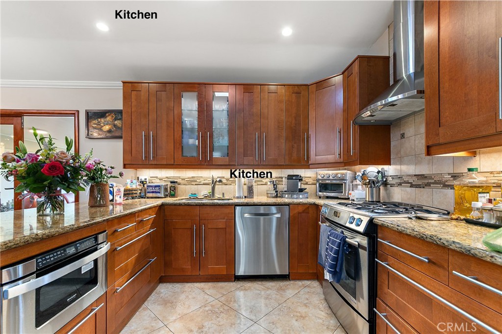 This beautiful 3 brms 2 baths home behind an electric gate on almost 7600 sq ft lot has been tastefully remodeled in and out. Raised ceiling, crown moldings, skylights, recessed lights throughout. New kitchen with European cabinets, granite counters, large breakfast counter, top of the line appliances. 2 new bathrooms with pressure jets shower