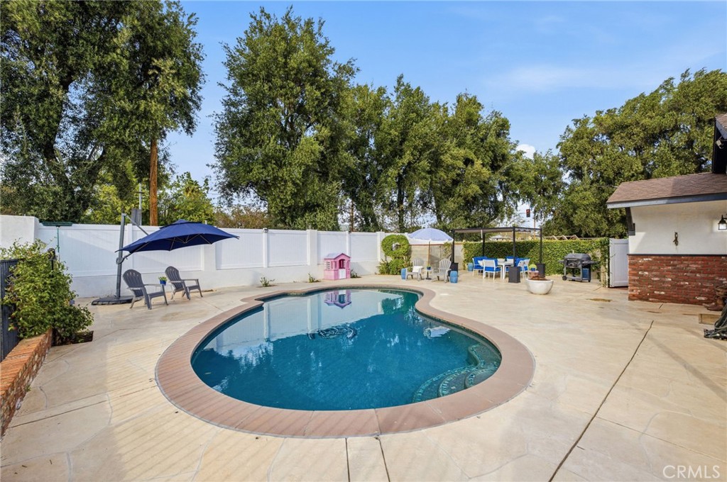 Welcome to this privately gated single level equestrian ranch home on a massive approx. ½ acre tree-lined corner lot primed for tremendous development opportunity! Add multiple ADU’s, sub-divide and build a separate home, level and build multi-family, etc., opportunities are endless. Property highlights include newer composition shingle roof, custom block and vinyl fencing, oak hardwood flooring, gorgeous kitchen with granite counter tops, farmhouse sink, beautiful cabinetry and stainless-steel appliances opening to the dining area, living room with a brick fireplace, and multiple double French doors leading the relaxing pool area and garden. The spacious primary suite offers vaulted ceilings with exposed beams, ample closet space and large primary bath with dual sink vanity, and step in shower. The magnificent grounds include large grassy areas, sparkling pool with maximum sun exposure, covered patio and raised garden area. Other amazing property features include large driveway including automatic driveway gate, massive, flat yard space, 462SF horse stables with tack room with plenty of room to expand, lush landscape and large, mature trees lining the property offering extreme privacy. Close to top rated schools including Sierra Canyon, hiking and biking trails, restaurants and shopping, this property offers tremendous value and is truly a must see!