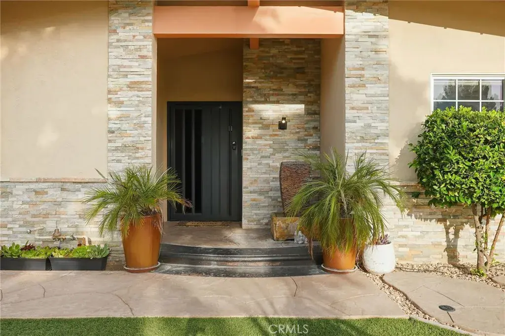 Experience modern California living at its finest with a seamless blend of traditional charm and contemporary design. From the moment you arrive, the striking black entry doors set the tone, highlighting the contrast between the classic single-story main residence and the sleek two-story ADU. The main residence offers 2,011 sq ft with 3 bedrooms and 2 bathrooms and features a bright open layout with elegant updates throughout and an enclosed patio of roughly 200 sq ft. The spacious living and dining areas flow into the remodeled kitchen with quartz countertops, custom cabinetry, stainless-steel appliances, and a large breakfast bar ideal for gatherings. A gas fireplace adds warmth to the main living space. The serene primary suite offers a walk-in closet and an updated en-suite bath overlooking the pool. Additional bedrooms provide versatility for guests, family, or a home office. A hallway laundry area with cabinetry adds convenience. Upgrades include paid solar, updated electrical, a tankless water heater, EV charger, a newer roof, and a recently replastered pool, offering comfort, reliability, and efficiency. The outdoor space is an entertainer’s retreat with a sparkling pool and waterfall wall, modern firepit lounge, second firepit, and an expansive covered patio with a full outdoor kitchen equipped with a pizza oven, charcoal grill, refrigerator, freezer, beer tap, beverage bar, sink, and ample seating. A storage area with a shed and an outdoor shower add practicality. The side yard includes a third firepit, mature fruit trees, and space ideal for storage or potential JADU. The modern ADU, fully permitted with its own address and yard, features 2 bedrooms and 2.5 bathrooms with striking architectural design. The ADU is approx 992 sq ft per the Certificate of Occupancy. The main level includes an open living area, a designer kitchen with waterfall-edge quartz, high-gloss cabinetry, premium LG appliances, a half bath, and in-unit laundry. Upstairs are two bedrooms—one en-suite and one with a hallway bath—each with private balconies and treetop views. With its own water sub-meter and strong Airbnb performance, the ADU offers excellent income potential or multigenerational living. Located on a quiet cul-de-sac surrounded by mature landscaping and natural privacy, this property delivers versatility, comfort, and a refined Southern California lifestyle, perfect for those seeking both function and elevated everyday living.