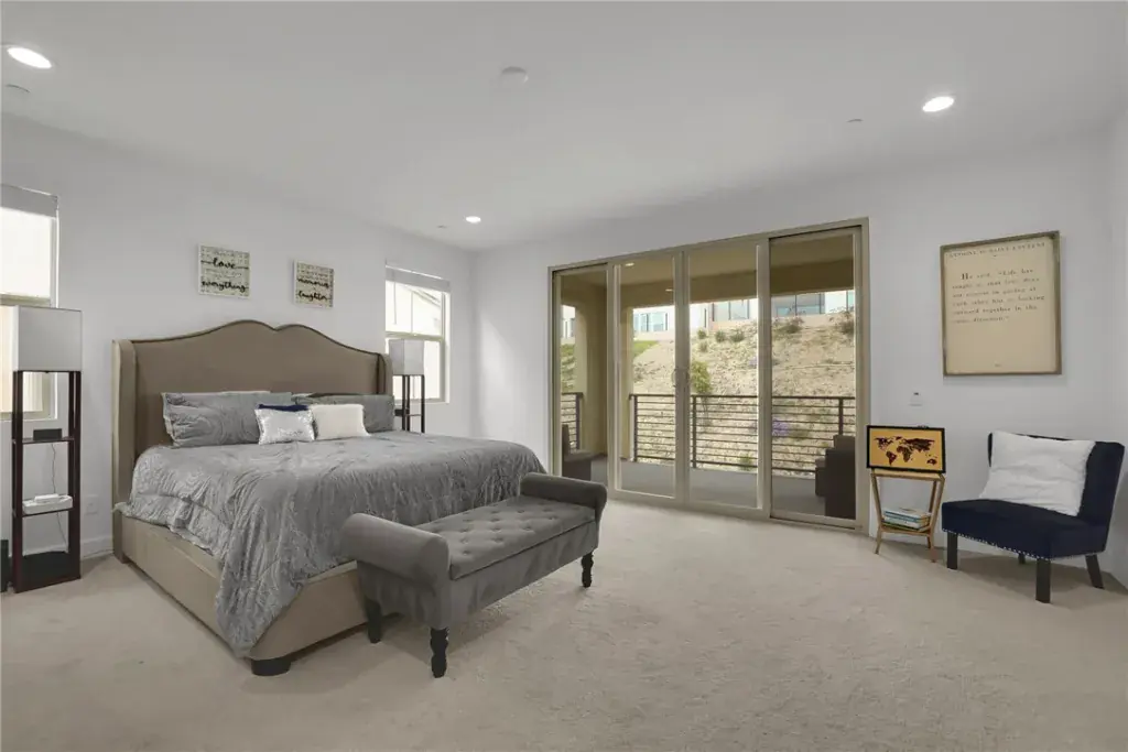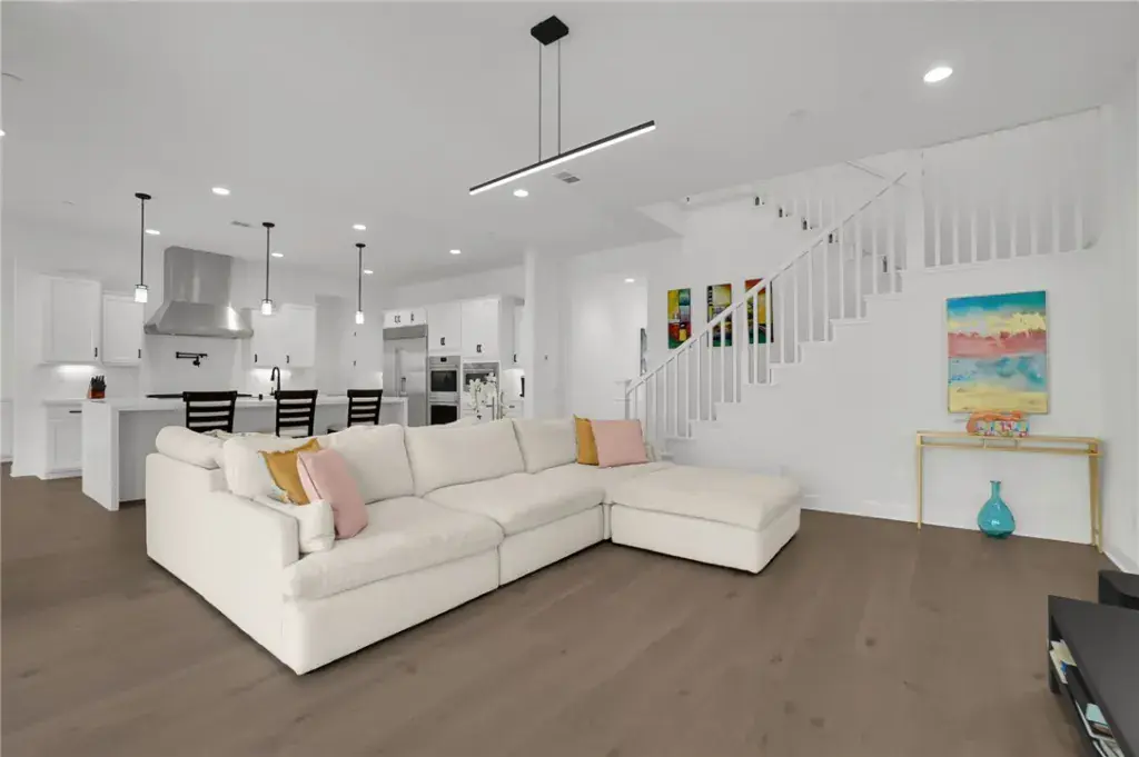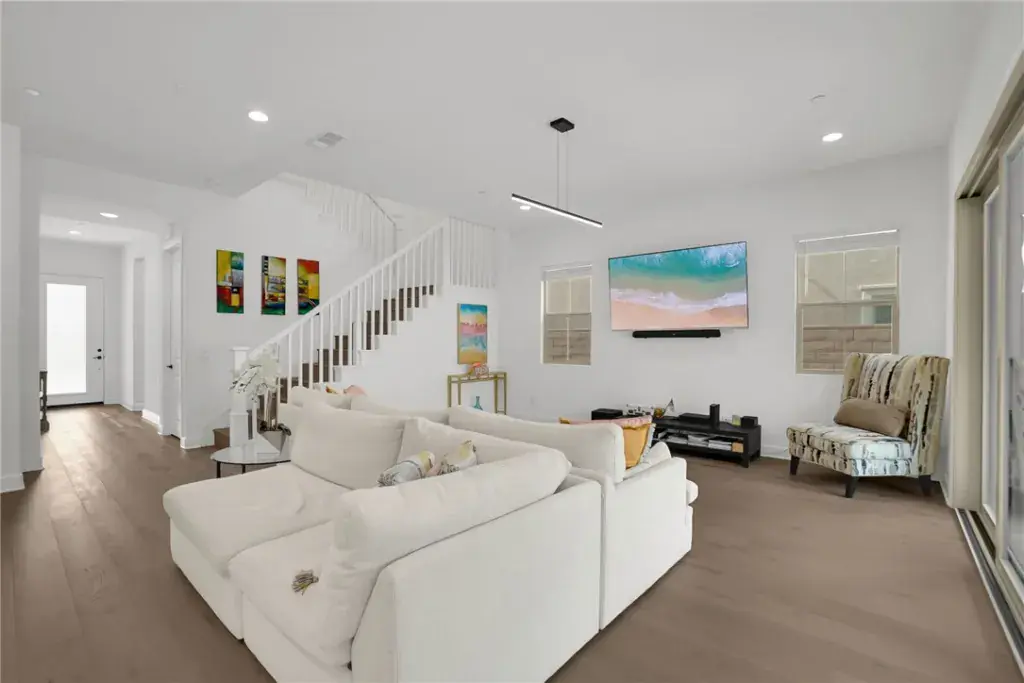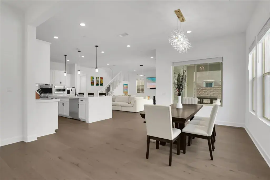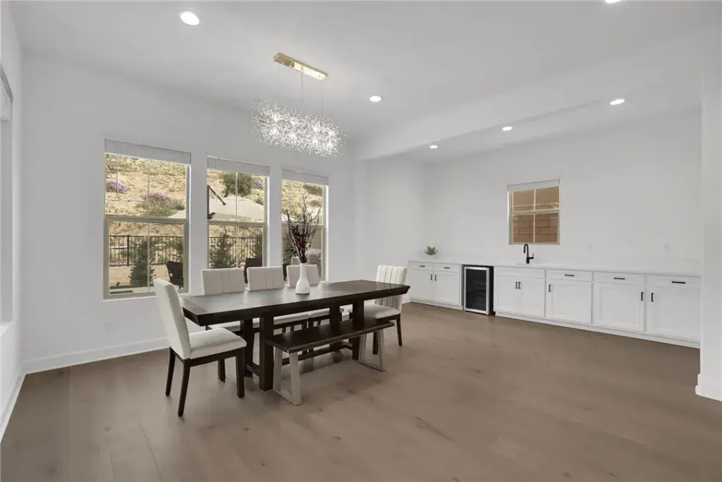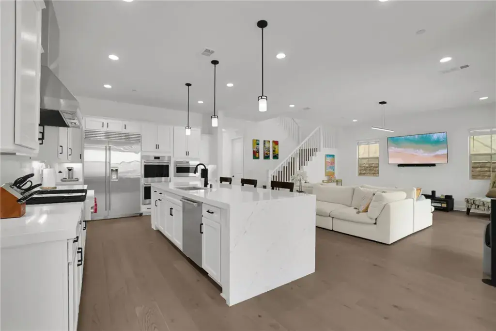 The interior is equally impressive, centered around a gourmet chef’s kitchen equipped with professional-grade Wolf appliances, a built-in Sub-Zero refrigerator, and stunning quartz countertops with a massive waterfall-edge island. Spanning 5 bedrooms, 5 full bathrooms, and 2 half bathrooms, the open-concept floor plan features engineered wood flooring throughout and includes a convenient main-level bedroom with a full bath. Modern essentials are seamlessly integrated, including an energy-efficient solar panel system, a dedicated EV charger, ADT home security, and smart-home capabilities. Residents also enjoy access to The Canyon Club and miles of scenic hiking trails, all while being offered at $1,899,999.