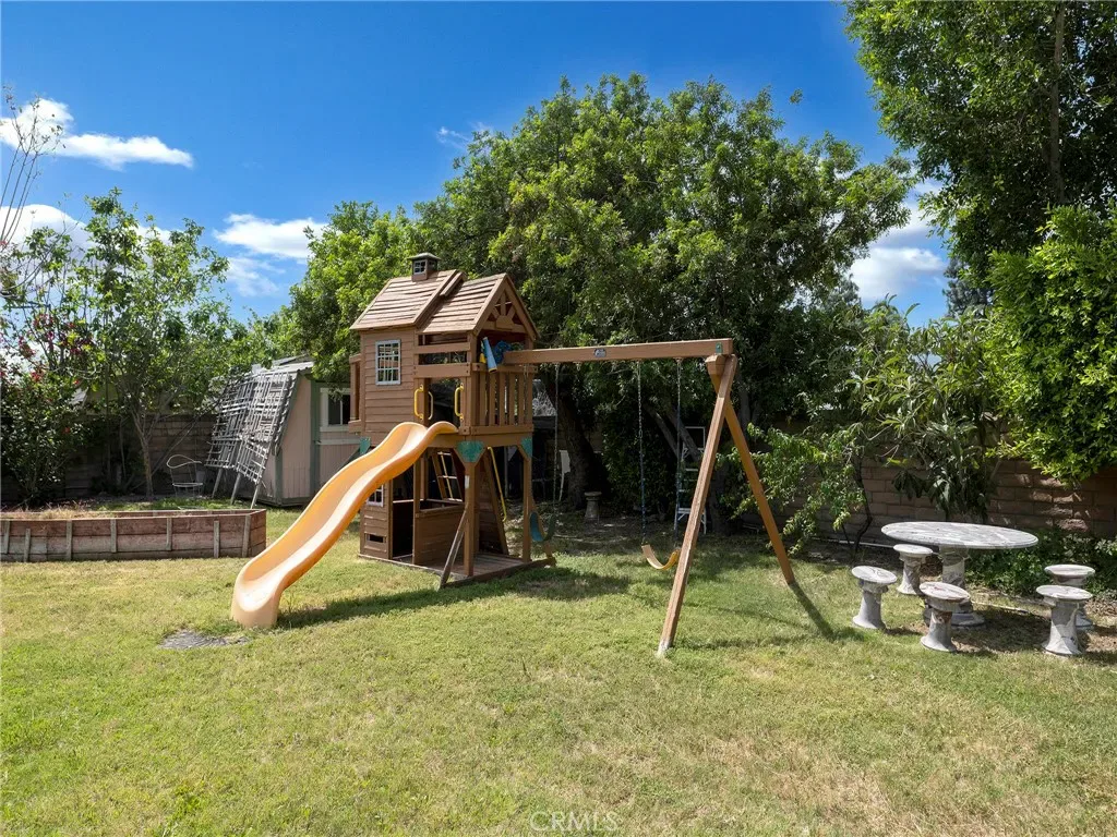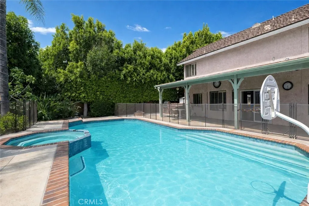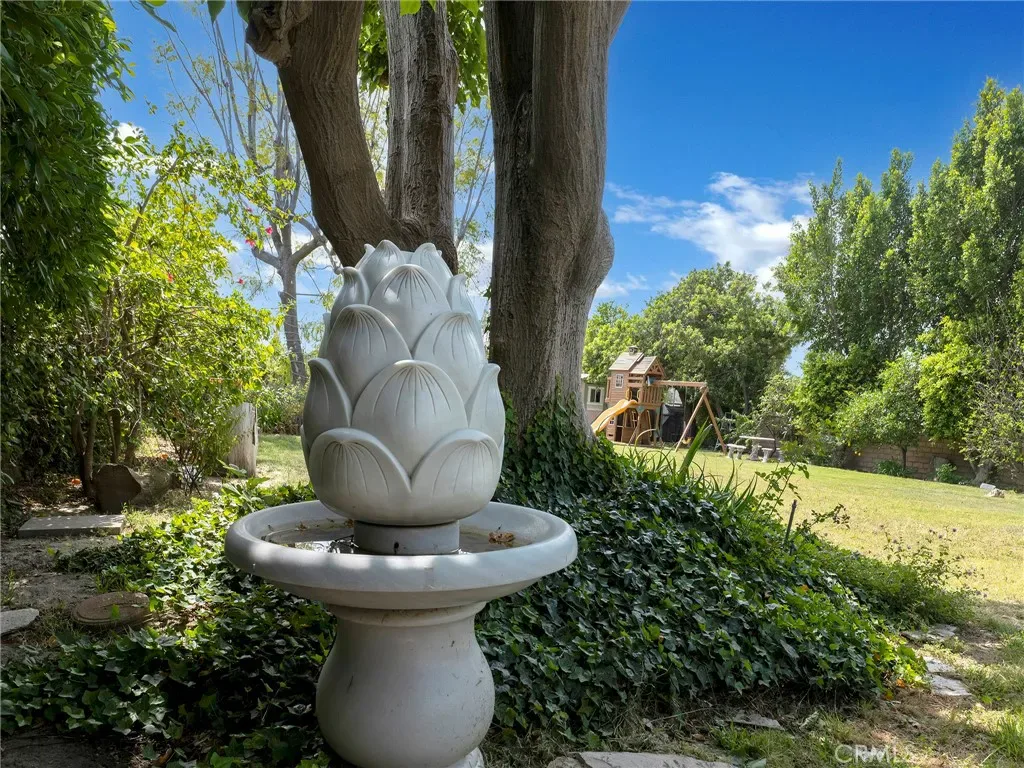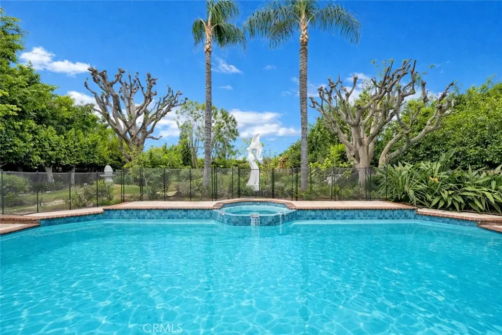 The heart of the home opens to an incredible backyard, truly park-like in scale and setting. Lush landscaping, a sparkling pool, and dozens of fruit trees create a peaceful, private retreat that’s perfect for both everyday living and entertaining.