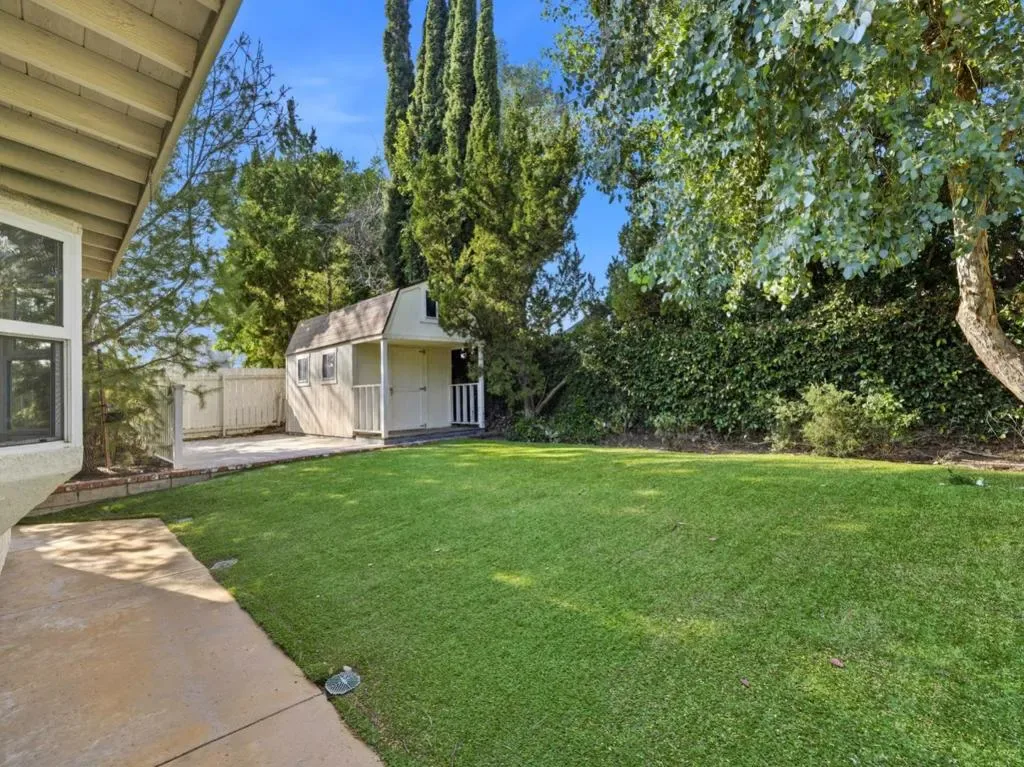 Crafted for elevated living, this expansive five-bedroom, four-bath home spans 3,680 square feet and pairs generous interior space with standout features including a private pool, covered RV parking on the right side of the house, and a fully enclosed screening room with a projector screen. The main living areas feel composed and inviting, highlighted by a distinctive stone fireplace. Year-round comfort is supported by heat and central A/C, while cameras and motion detectors contribute to a heightened sense of security throughout the home. The kitchen reflects classic style with rich cabinetry, ample prep space, and a layout that connects naturally to surrounding rooms. Five well-proportioned bedrooms and four baths provide flexibility for a range of living arrangements, from hosting guests to creating private work or relaxation spaces. Outside, the yard is designed for both enjoyment and ease, featuring a pool, automatic sprinklers, and a detached shed for added storage. The Chatsworth location places you close to Stoney Point Park and Chatsworth Park South, with Ralphs, Sprouts, and Westfield Topanga offering nearby options for groceries, shopping, dining, and entertainment. *Fireplace is for decorative use only and cannot be used without consent from Belong. Pet Friendly