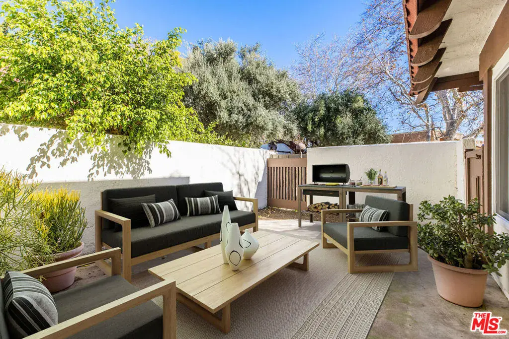 Welcome to 22342 James Alan Circle, nestled in Chatsworth’s sought-after Rockpointe community! This stylish La Costa floorplan townhouse features 4 bedrooms, 3 baths, and 1,773 square feet of thoughtfully designed living space. Perfectly located near a sparkling community pool and just steps from a play area, this home is move-in ready and primed for both comfort and convenience.Inside, enjoy soaring vaulted ceilings, abundant natural light, and updated recessed lighting throughout. The refreshed kitchen boasts modern finishes, a pantry, a charming bay window that adds character and warmth, and a built-in wine fridge for the ultimate in entertaining ease. It opens to flexible spaces for dining and relaxing, with seamless access to one of three private outdoor areas. Picture yourself dining al fresco under the stars or enjoying your morning coffee surrounded by serenity. A versatile downstairs bedroom and adjacent 3/4 bathroom offer ideal options for guests or a home office. Upstairs, the spacious primary suite features an updated en-suite bath, generous closets, and its own private balcony. Two additional bedrooms and a full hall bath complete the upper level, providing flexibility for family or visitors.This home has been thoughtfully upgraded with dual-pane windows, new flooring in most areas, a two-year-old HVAC system, and an EV outlet conveniently located in the direct-access garage, which also includes the laundry area.The Rockpointe community offers resort-style amenities, including 4 heated pools, a spa, clubhouse, playgrounds, and lush greenbelts. Outdoor enthusiasts will love the nearby Chatsworth Park South and North, featuring basketball courts, tennis/pickleball courts, trails, and more. With easy freeway access, ample guest parking, and proximity to Chatsworth Park Community Magnet School, this home truly has it all. Plus, the HOA includes both earthquake and fire insurance, providing added peace of mind.