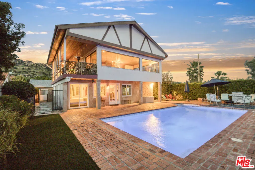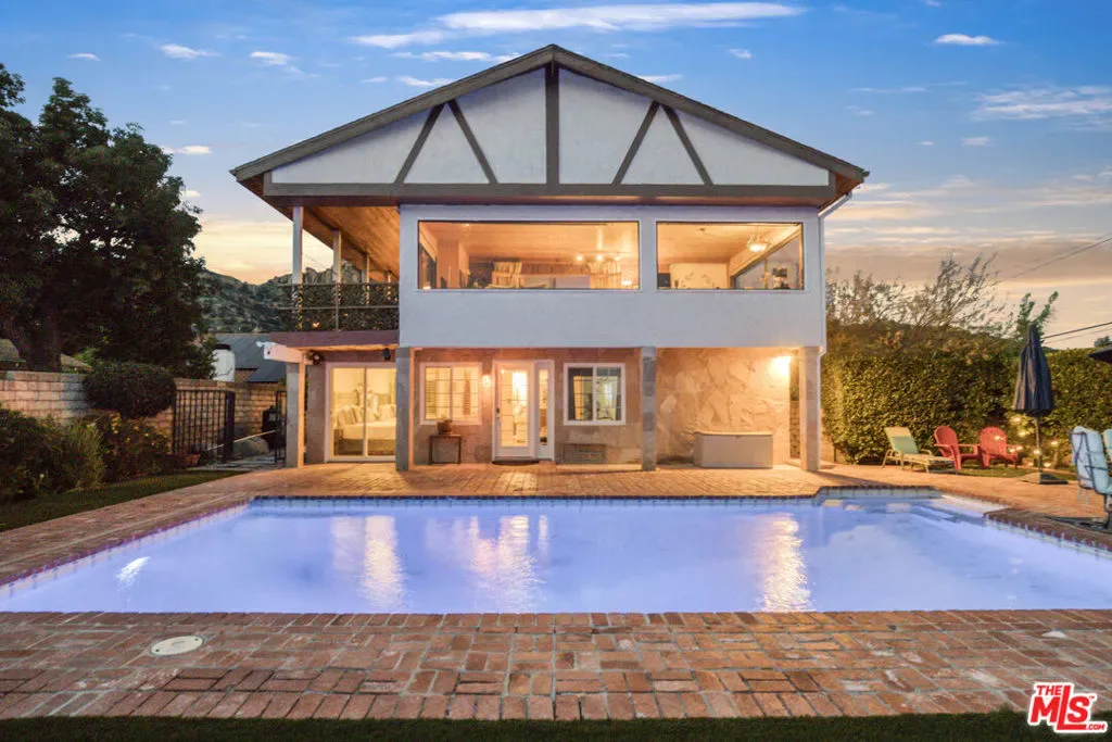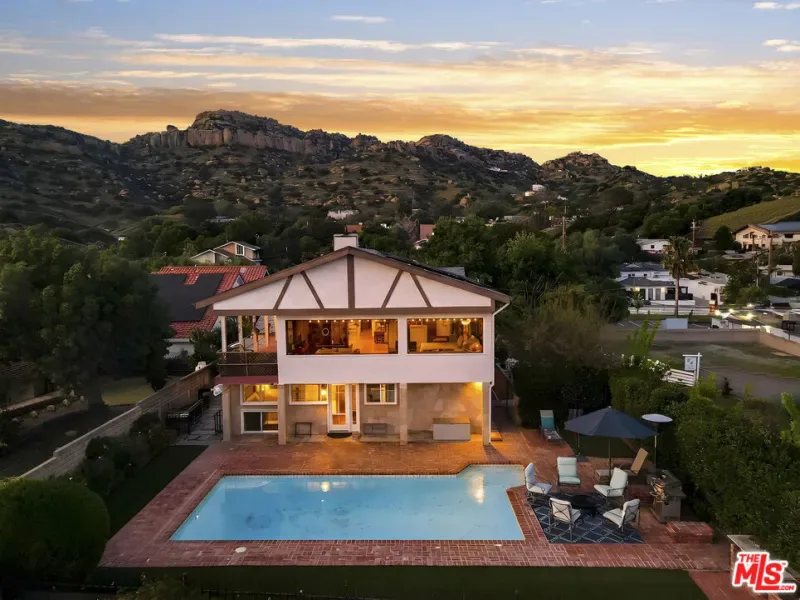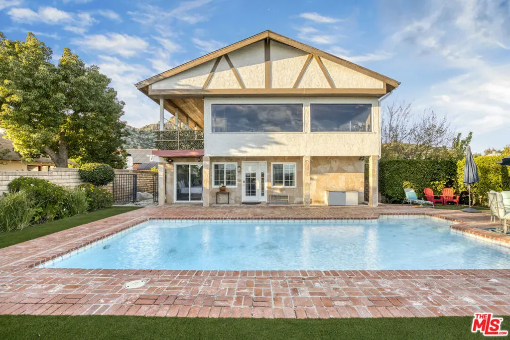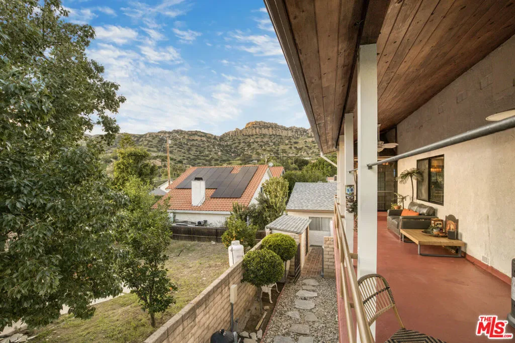 Extraordinary preserve-adjacent view property located on a quiet private street that ends at the Chatsworth Nature Preserve. This expansive property offers 5 bedrooms and 2 bathrooms across a main home and a detached guest house, each with its own private gated entrance. The guest house is currently operating as a successful short-term rental generating attractive supplemental income.The main residence offers approximately 3,300 square feet of living space, including three separate living areas, an upstairs multipurpose room, and a dedicated music studio with oversized windows framing breathtaking sunsets. The second level enjoys sweeping 360-degree views, where nearly every window captures expansive panoramas of the Chatsworth Nature Preserve, a cinematic landscape where numerous motion pictures have been filmed.On the opposite side of the home, enjoy striking views of the iconic Chatsworth red rock formations known as the “Twelve Apostles.”The spacious gourmet kitchen showcases dramatic pitched exposed-beam ceilings and flows seamlessly into the dining room with fireplace, creating warmth and architectural character. Expansive balcony areas extend the living experience outdoors, perfectly positioned to take in the surrounding natural beauty.The private pool retreat features a large sparkling pool, outdoor grilling area, and multiple entertaining spaces ideal for relaxing or hosting gatherings. A gated walkway from the pool area provides direct access to the adjacent Chatsworth Nature Preserve and its scenic hiking trails, offering a rare opportunity to step directly from your property into protected open space.A rare opportunity to own a private, view-rich property with income potential, creative space, and direct connection to nature, offering the feel of a secluded retreat while remaining within Los Angeles County.